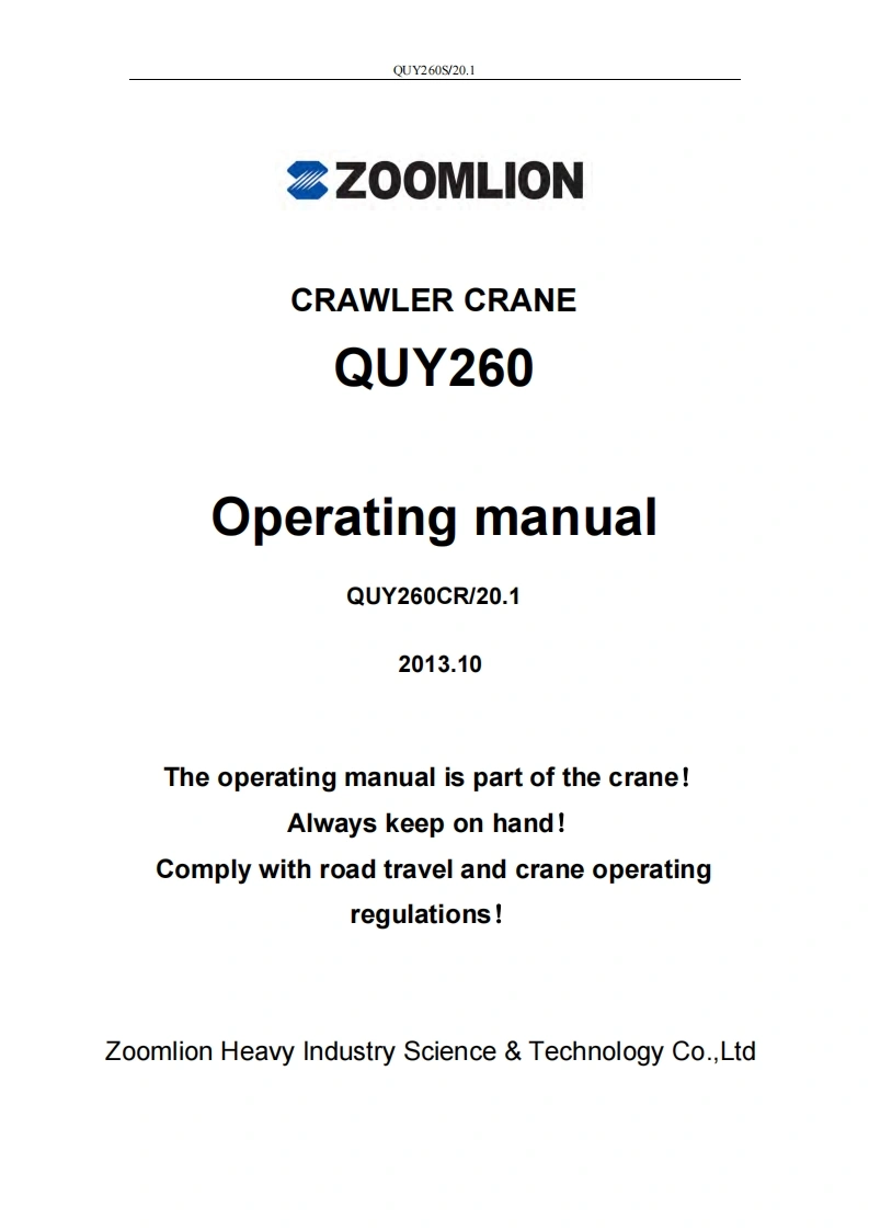 中联重科起重机吊车-Crawler-Crane-QUY260—Operating-manual_操作说明书手册找手册网前天发布关注私信10.32MB433页048中联重科起重机吊车-Crawler-Crane-QUY260—Operating-manual_操作说明书手册此内容为付费资源,请付费后查看¥39¥49黄金会员免费钻石会员免费登录购买付费资源 第1页 / 共433页 第2页 / 共433页 第3页 / 共433页 第4页 / 共433页 第5页 / 共433页 第6页 / 共433页 第7页 / 共433页 第8页 / 共433页 第9页 / 共433页 第10页 / 共433页 试读已结束,还剩423页,您可下载完整版后进行离线阅读 THE END中联重科/山河智能/Doosan/BT 文本预览 QUY260F/20.CYZOOMLION Crawler CraneQUY260QUY260/20.CY 查看更多 收起部分 喜欢就支持一下吧收藏
