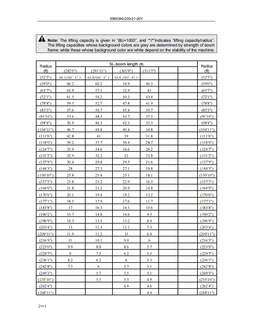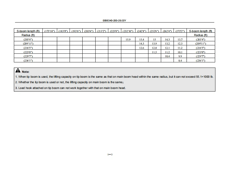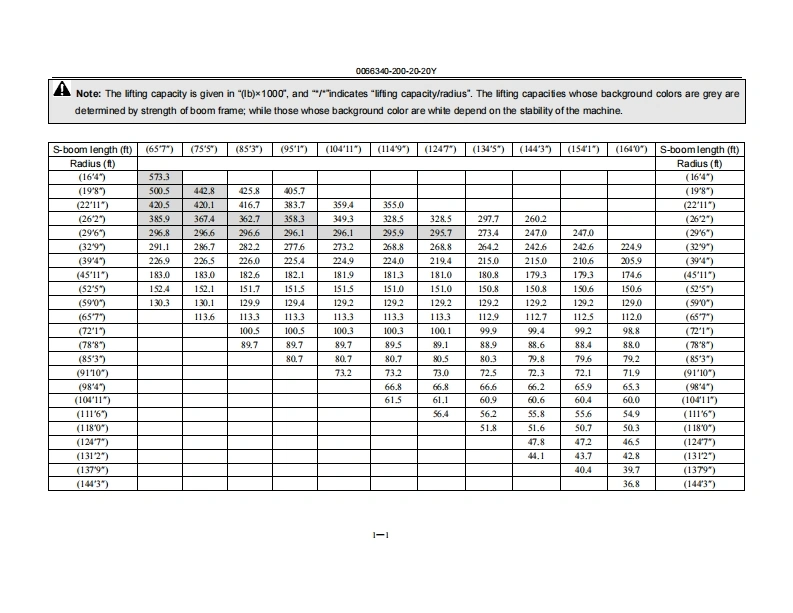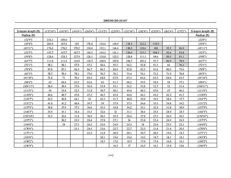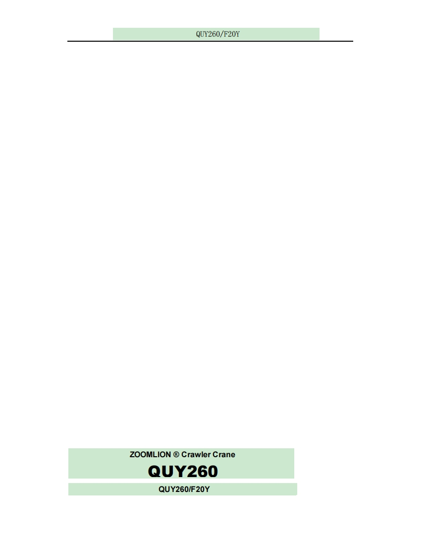 QUY260/s20.1YZOOMLIONCRAWLER CRANEQUY260Load capacity chartQUY260CR/20.12014.6The operating manual is part of the craneAlways keep on handComply with road travel and crane operatingregulationsChangsha Zoomlion Heavy Industry ScienceTechnology Development Co.,Ltd.