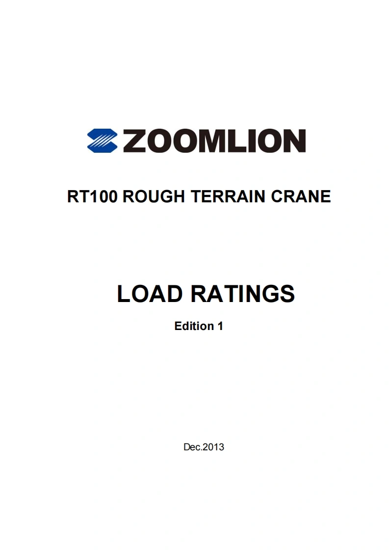 Vision creates futureSZOOMLIONZOOMLIONLOAD CHART MANUAL FORRT100 ROUGH TERRAIN CRANE200MUON HEAY INDUSTRY SCENCE AND TECHNOLOGY OOULTDChangsha Ecoonic and Toemdogical DevdopmentZone.Hunan Proince CnaAea0d240131ZOOMLION HEAWY NDUSTRY SCIENCE AND TECHNOLOGY OOLTD