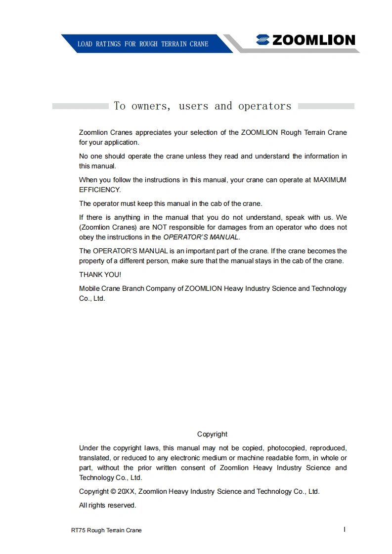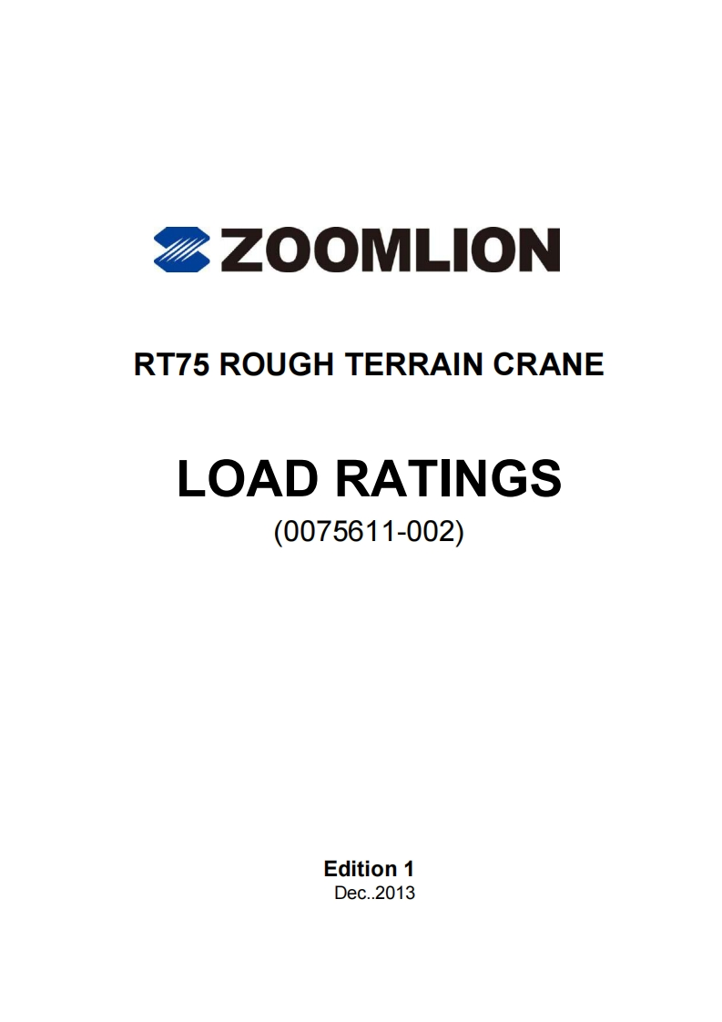 Vision creates futureZOOMLIONZOOMLIONLOAD CHART MANUAL FORRT75 ROUGH TERRAIN CRANE200MUON HEAY INDUSTRY SCENCE AND TECHNOLOGY OOULTDChangsha Ecoonic and Toemdogical DevdepmentZone.Hunan Proince CnaPostoode:410131ZOOMLION HEAWY NDUSTRY SCIENCE AND TECHNOLOGY OOLTD
