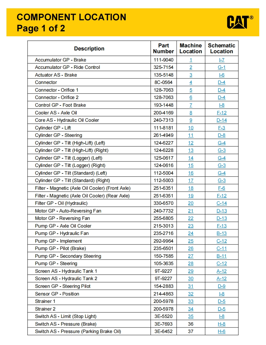 INTERACTIVE SCHEMATICCATBookmarks血省自0p5ams·☒FeaturesThis document is best viewed at aCover Pagescreen resolution of 1024 X 768.g省InformationTo set your screen resolution do the following:Component TableRIGHT CLICK on the DESKTOP.Tap TableFluid Power SymbolsSelect PROPERTIES.Electrical SymbolsCLICK the SETTINGS TABSchematicMOVE THE SLIDER under SCREEN RESOLUTION回省Machine ViewsFront Frameuntil it shows 1024 X 768.Rear FrameCLICK OK to apply the resolution.Tap ViewsThe Bookmarks panel will allow you toquickly navigate to points of interest.EC-C2-E-C60EC-C3-E-C61Click on any text that is BLUE and underlined.These are hyperlinks that can be used to navi-gate the schematic and machine views.EC-C1-When only one callout is showing on a machine view thisVIEW ALL CALLOUTSbutton will make all of the callouts visible.This button islocated in the top right corner of every machine view page.HOTKEYS(Keyboard Shortcuts)FUNCTIONKEYS⊕Zoom In“CTRL”/“+”OZoom Out“CTRL”/“”Fit to Page“CTRL”I“0”(zero)四Hand ToolSPACEBAR”(hold down)Find“CTRL”/“F”