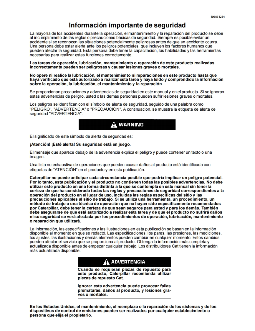 卡特CAT-980L(2)维修资料找手册网前天发布关注私信16.63MB272页035卡特CAT-980L(2)维修资料此内容为付费资源,请付费后查看¥29¥36黄金会员免费钻石会员免费登录购买付费资源 第1页 / 共272页 第2页 / 共272页 第3页 / 共272页 第4页 / 共272页 第5页 / 共272页 第6页 / 共272页 第7页 / 共272页 第8页 / 共272页 第9页 / 共272页 第10页 / 共272页 试读已结束,还剩262页,您可下载完整版后进行离线阅读 THE END卡特/华丰/山东威猛/Vermeer 文本预览 SSBU9340-02(es-x刈)CATnoviembre 2016(Traduccion:mayo 2017)Manual deOperacion yMantenimiento980L Cargadores de RuedasD8Z1-UP(980L)ldioma:instrucciones originalesSAFETY.CAT.COM 查看更多 收起部分 喜欢就支持一下吧收藏