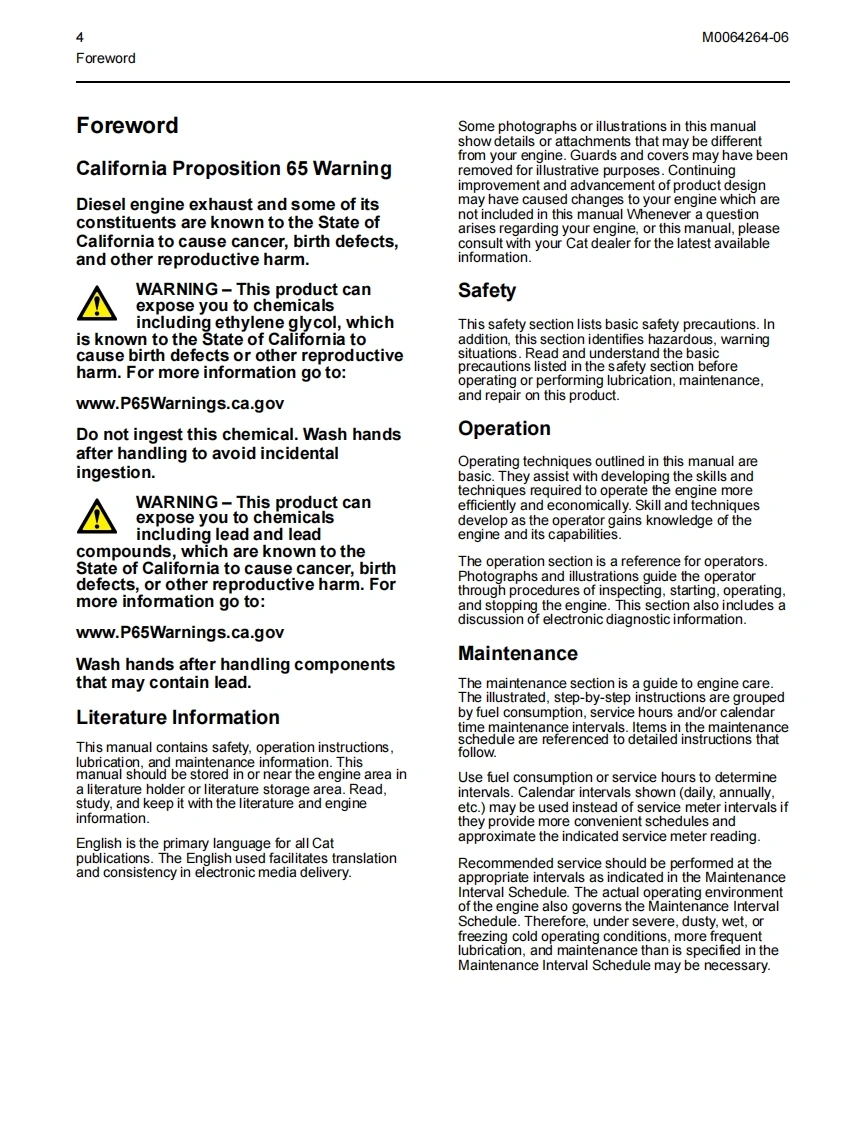 卡特CAT-C1.7-2.2-Engine-Manual-M0064264EN-US维修资料找手册网前天发布关注私信2.06MB110页033卡特CAT-C1.7-2.2-Engine-Manual-M0064264EN-US维修资料此内容为付费资源,请付费后查看¥29¥36黄金会员免费钻石会员免费登录购买付费资源 第1页 / 共110页 第2页 / 共110页 第3页 / 共110页 第4页 / 共110页 第5页 / 共110页 第6页 / 共110页 第7页 / 共110页 第8页 / 共110页 第9页 / 共110页 第10页 / 共110页 试读已结束,还剩100页,您可下载完整版后进行离线阅读 THE END卡特/华丰/山东威猛/Vermeer 文本预览 M0064264-06(en-us)CATDecember 2020Operation andMaintenanceManualC1.7 and C2.2 Industrial EnginesG43 1-UP (Engine)J26 1-UP(Engine)G34 1-UP (Engine)PUBLICATIONS.CAT.COM 查看更多 收起部分 喜欢就支持一下吧收藏