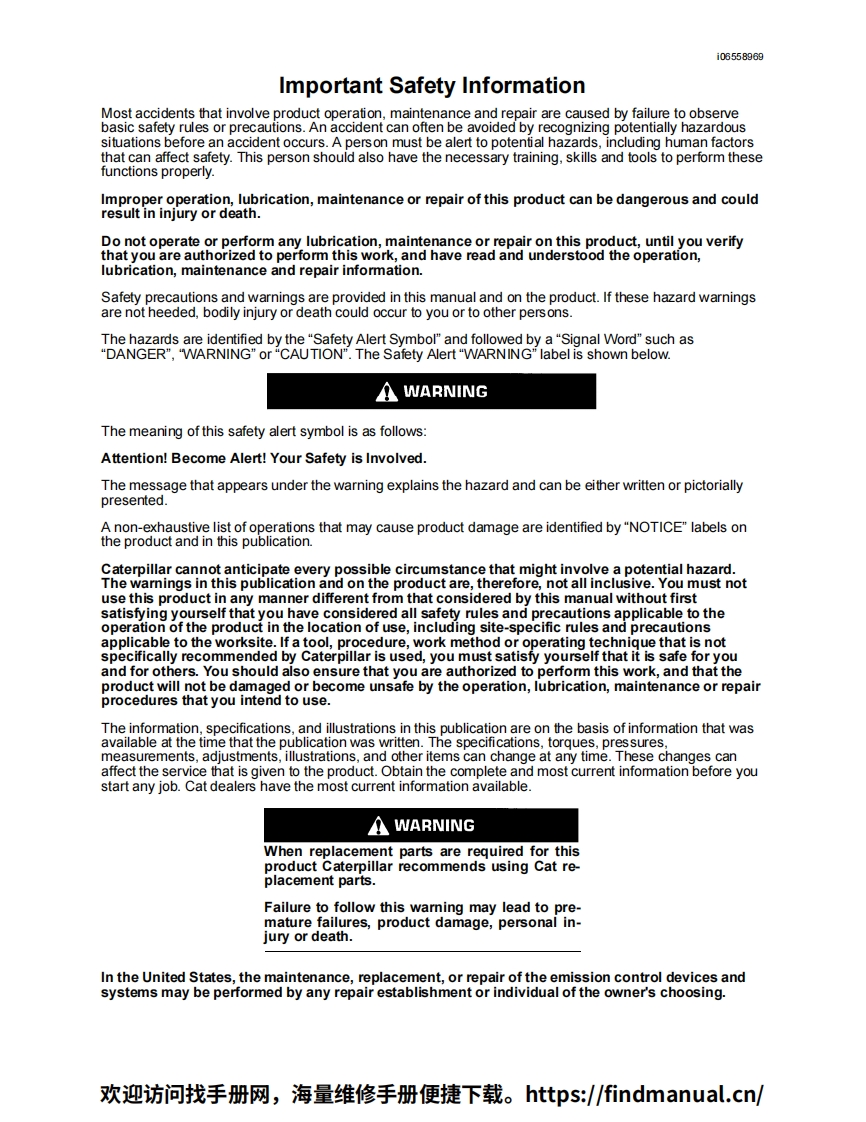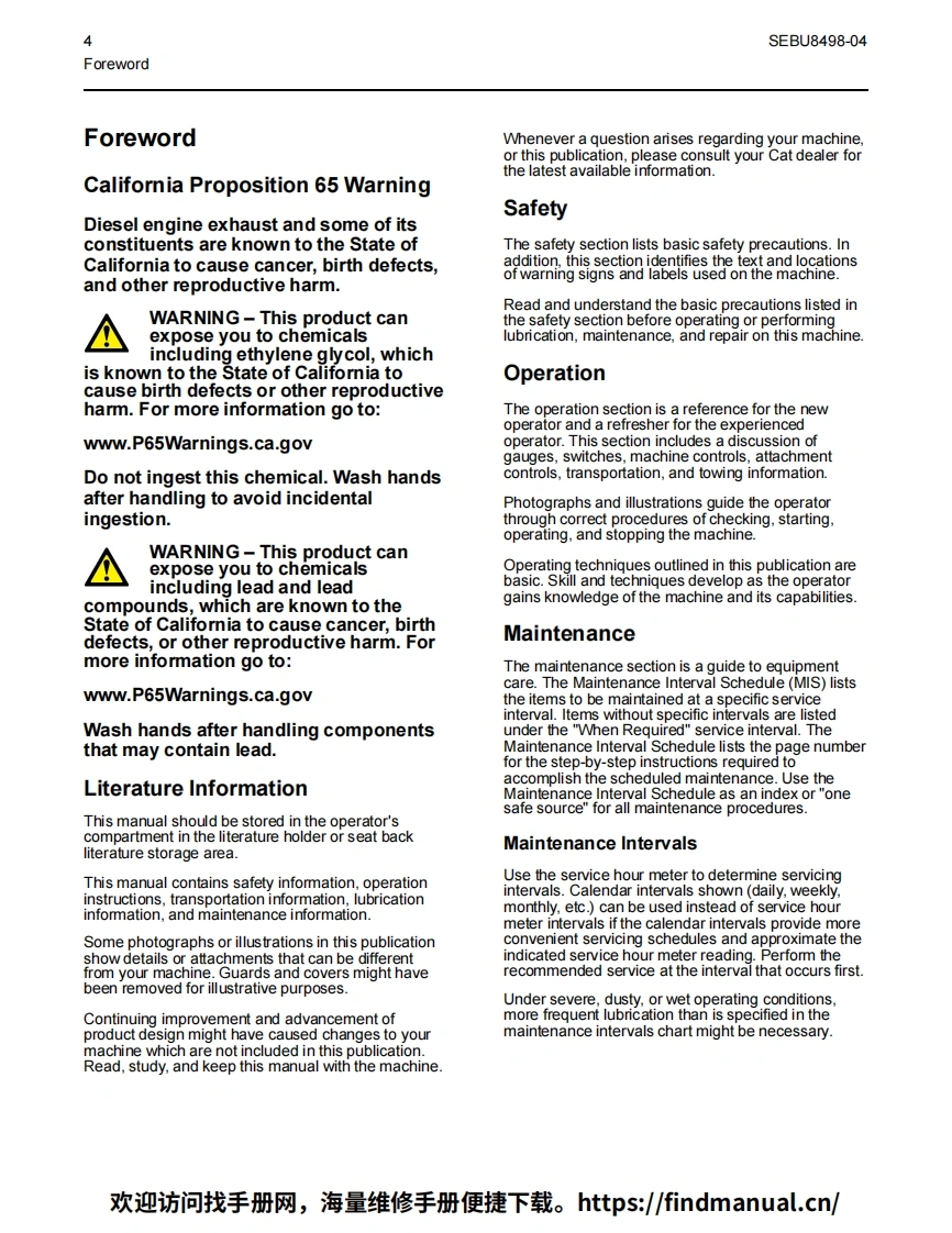 SEBU8498-04(en-us)April 2019Operation andMaintenanceManualD3K2,D4K2,D5K2 Track-Type TractorsKFF 1-UP (D3K2)KLL 1-UP (D3K2)GAE 1-UP (D3K2)KMM 1-UP(D4K2)KRR 1-UP (D4K2)KWW1-UP (D5K2)KYY 1-UP(D5K2)TRF 1-UP (D5K2)■Scan to find and purchase genuine Cat parts and relatedservice information.CAT▣欢迎访问找手册网,海量维修手册便捷下载。https:./findmanual.cn/