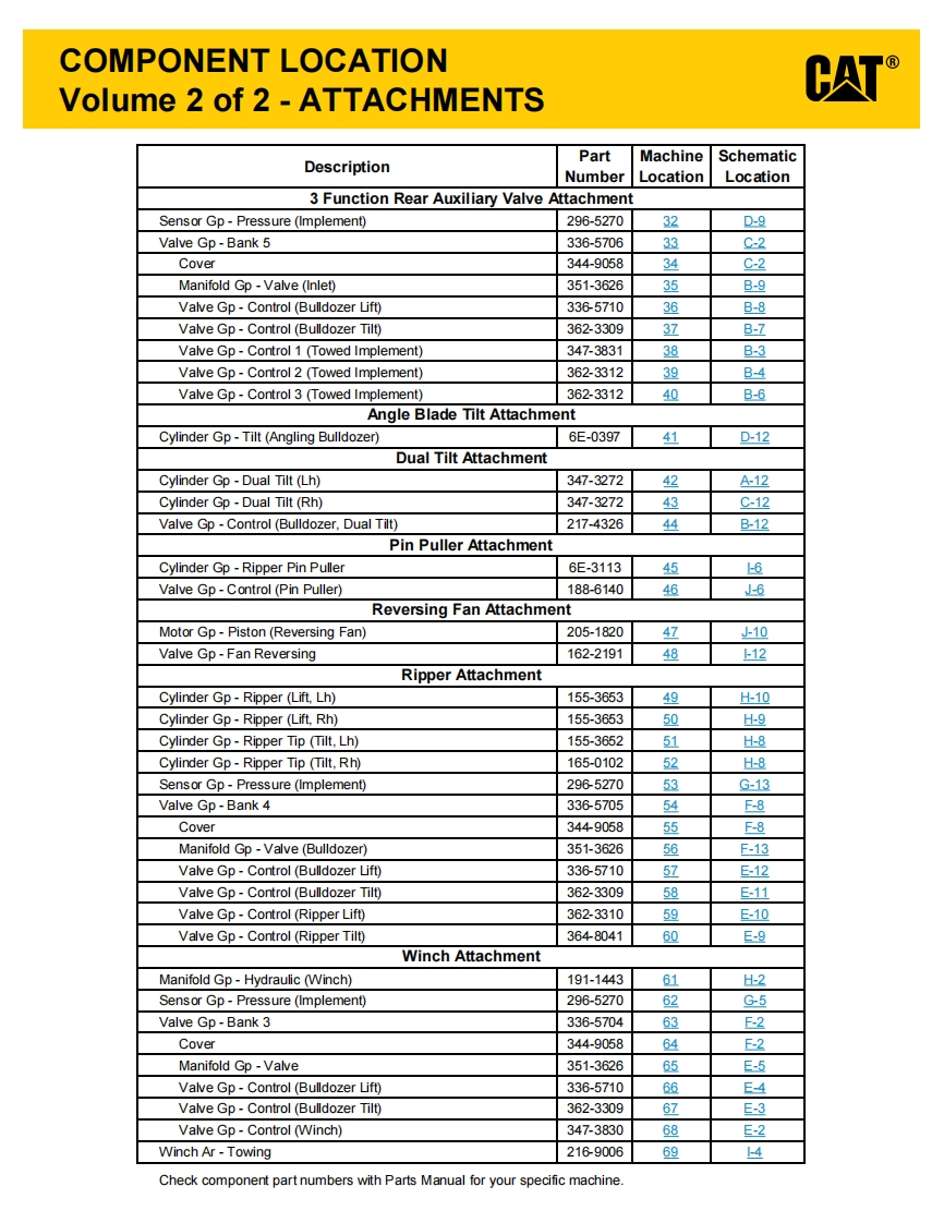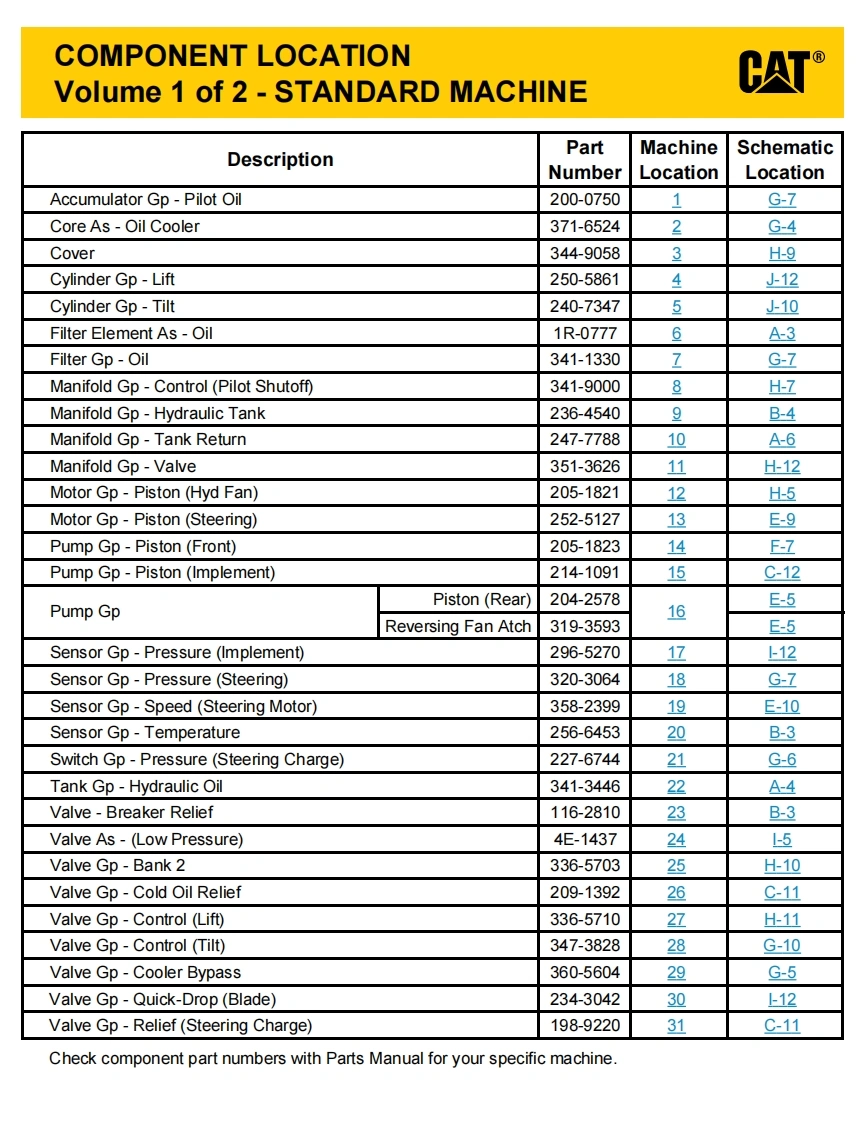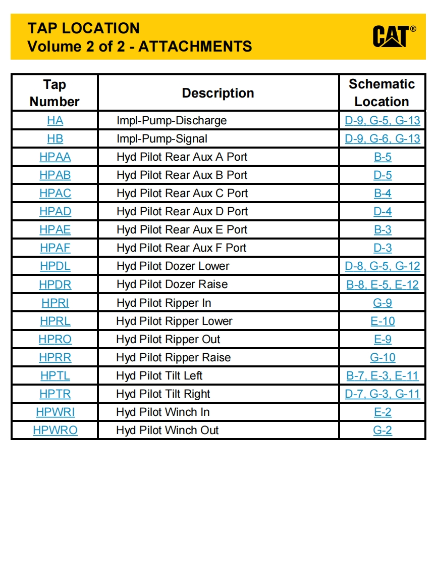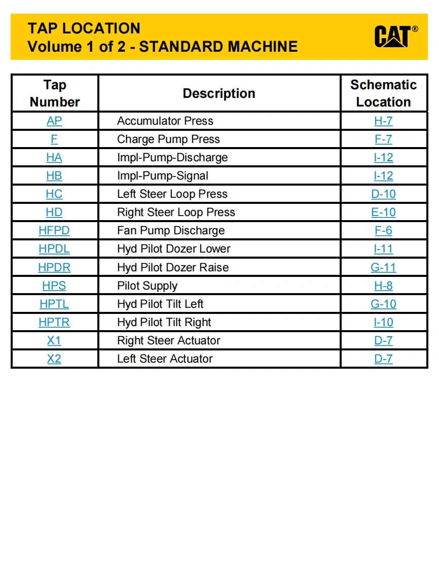 INTERACTIVE SCHEMATICCATBookmarks血营当0p5ams·图FeaturesAThis document is best viewed at aCover Pagescreen resolution of 1024 X 768.g省InformationTo set your screen resolution do the following:Component TableRIGHT CLICK on the DESKTOP.]Tap TableFluid Power SymbolsSelect PROPERTIES.Electrical SymbolsCLICK the SETTINGS TABSchematicMOVE THE SLIDER under SCREEN RESOLUTION回省Machine ViewsFront Frameuntil it shows 1024 X 768.Rear FrameCLICK OK to apply the resolution.Tap ViewsThe Bookmarks panel will allow you toquickly navigate to points of interest.EC-C2-E-C60EC-C3-E-C61Click on any text that is BLUE and underlined.These are hyperlinks that can be used to navi-gate the schematic and machine views.EC-C1-When only one callout is showing on a machine view thisVIEW ALL CALLOUTSbutton will make all of the callouts visible.This button islocated in the top right corner of every machine view page.HOTKEYS(Keyboard Shortcuts)FUNCTIONKEYS⊕Zoom In“CTRL”/“+”⊙Zoom Out“CTRL”/“”Fit to Page“CTRL”I“0”(zero】四Hand ToolSPACEBAR”(hold down)Find“CTRL”I“F”