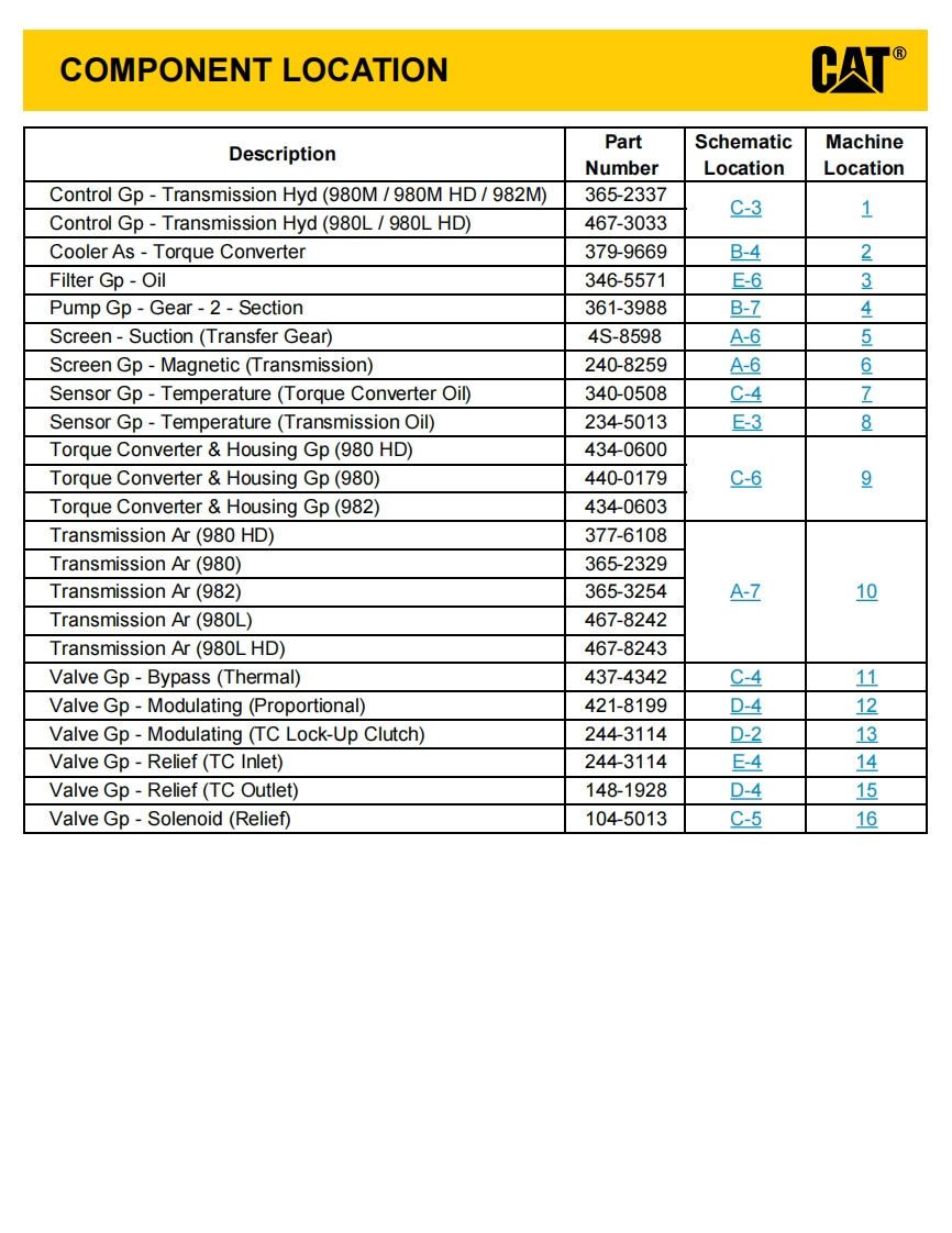 018chmg的eSCHEMATIC FEATURES AND TIPSSAVEa copy of this schemeticTHE BOOKMARKS PANEL WILL ALLOW YOU TOTHE FUNCTION ISOLATION TOOLS ISOLATEBookmarksQUICKLY NAVIGATE TO POINTS OF INTEREST.CIRCUITS FOR TRACING HYDRAULIC LINES回·回凤贝FeaRuros居Cover page贝SchematicFunction bsoltion Tools贝Grids On/,otHNE VEW-FRONT贝All CircuitsOffSTANDARD VIEW▣All Circuits OnNE WER021(Orange)(Pilot Pump Output)o@0032(Red)(Main Pump Output)心577(Lt Green)(Drain/Return Line)y▣Machine Views贝Machine View-Front▣Machine View-Rear▣Implement Stack021 (Orange)(Pilot Output)CIRCUIT ISOLATEDCLICK HERE TO VIEW THE SCHEMATICUTILIZE HYPERTEXT TO NAVIGATE TO COMPONENTS AND THEIR MACHINE LOCA-SYMBOLS AND DEFINITIONS PAGETION QUICKLY.HYPERTEXT IS INDICATED BY TEXT THAT IS BLUE AND UNDERLINEDELECTRICAL SYMBOLS黑Level4SwitchBASIC HYDRAULIC SYMBOLSOHAFluidPumpSpringConditioneror MotorAdjustable)HOTKEYS (Keyboard Shortcuts)FUNCTIONKEYSZoomIn"CTRL"STAND●Zoom Out"CTRLHPSHPSFitto Page"CTRL"I“0"(zero)Hand Tool“SPACEBAR"(hold downFind"CTRL"I“F"WHEN ONLY ONE CALLOUT IS SHOWING ON ASearch“CTRL"/“SHIFT"I“F"VIEW ALL CALLOUTSMACHINE VIEW,CLICKING ON THIS BUTTON WILLMAKE ALL OF THE CALLOUTS VISIBLE.THISDue to different monitor sizes and PDF readerpreferences there may be some varance in linkedBUTTON IS TYPICALLY LOCATED IN THE TOP RIGHTschematic locations.This document is best viewed atCORNER OF EVERY MACHINE VIEW PAGE.a screen resolution of 1024 X 768.2021 Caterpillar.All Righis Reserved CAT,CATERPLLAR LETS DO THEWORK.their respective logos,Caterpillar Corporate Yellow.the Power Edand Cat Modern Hex trade dress as well as corporate and preduct identCATherein,are trademarks of Caterpillar and may not be used wthout perS0TEWO贼