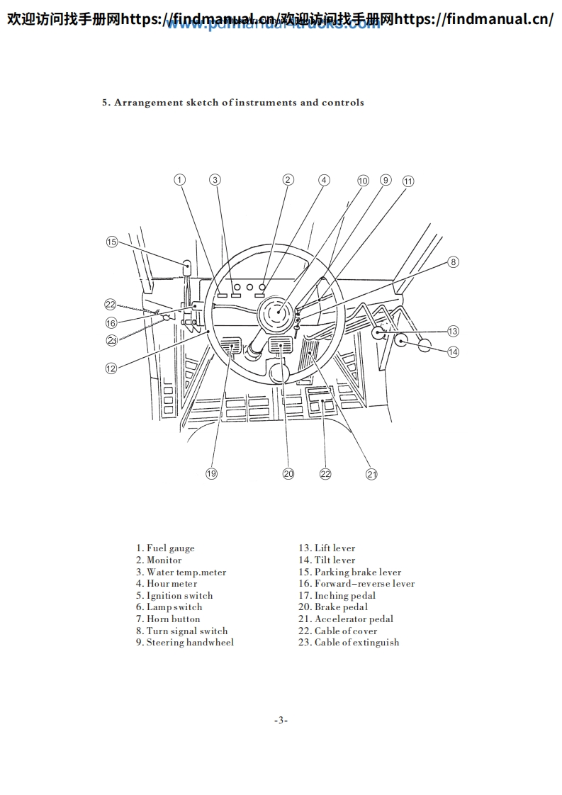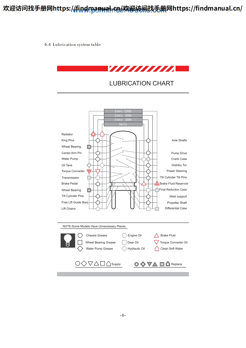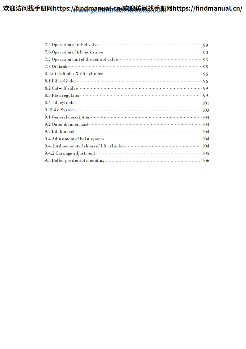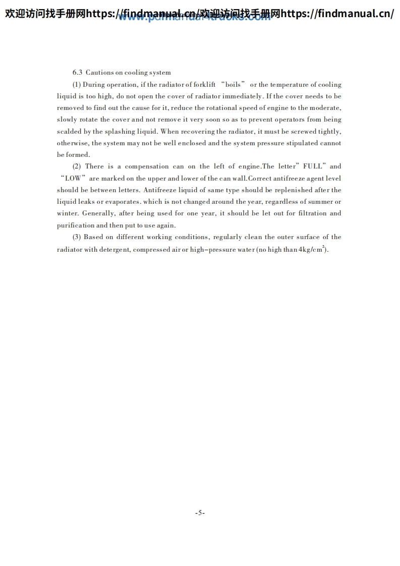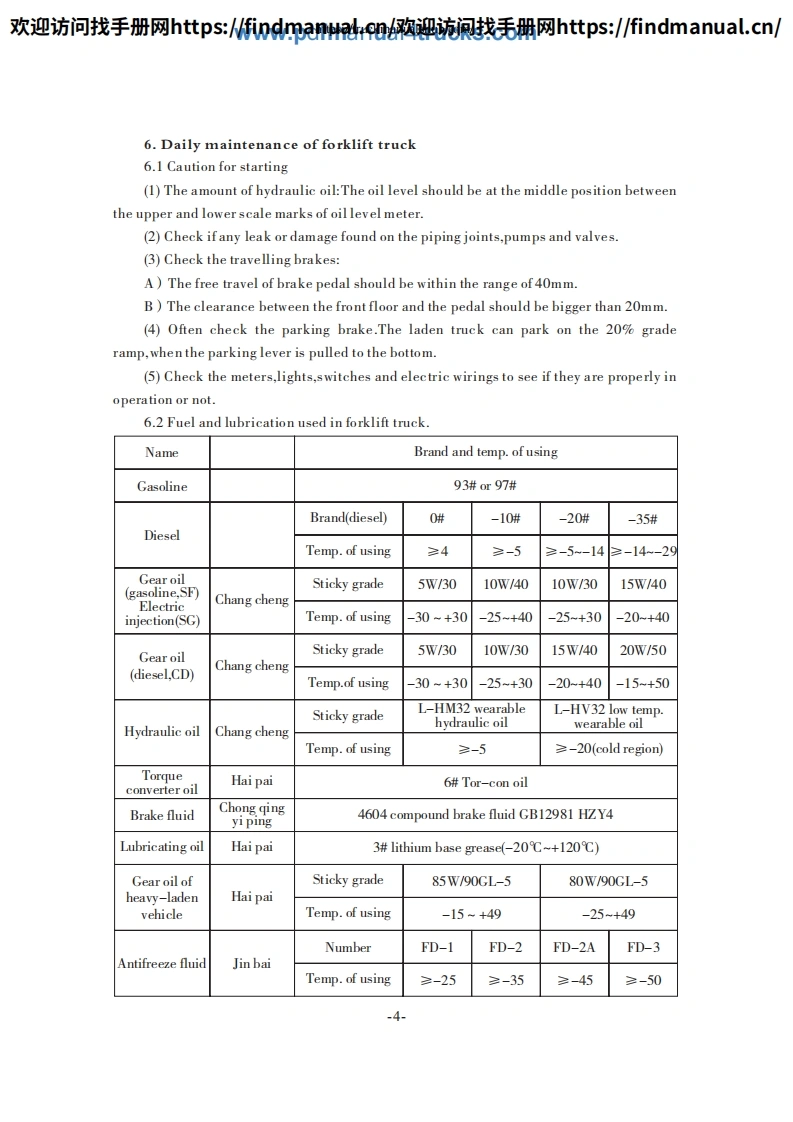 欢迎访问找手册网https::/findmanua购迎流讽找毛册网https::/findmanual.cn/FOREWORDThis manual accounts for "HELI"Forklift Truck in H2000 series from 5t to 10t,includes its performance,constructure,safe operation and regular preventivemaintenance,so that operators,mechanics and supervisors of Forklift Truck correctlyoperate and prevent maintenance.Read and understand this manual before operatingyour lift truck!This manual is your guide to safe operation and regular preventivemaintenance.So as to let the Forklift Truck keep good working conditions.If any operation or maintenance does't accord with requires in this manual,ourrelated promises is inefficacy.Due to continuous improvements in design,it is possible that the latest descriptioncontained herein may differ slightly from the truck delivered to you.Moreover,thespecification of the forklift truck may be changed insignificantly depending on itsdestination.Notice:Designations in the CATALOGUE are difference from those in productnameplates and quaulifying licenses.Designations in the CATALOGUE include enginecode and number of remodification.CPCD50 -W2Engine code and number of remodification.Type.