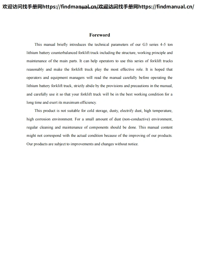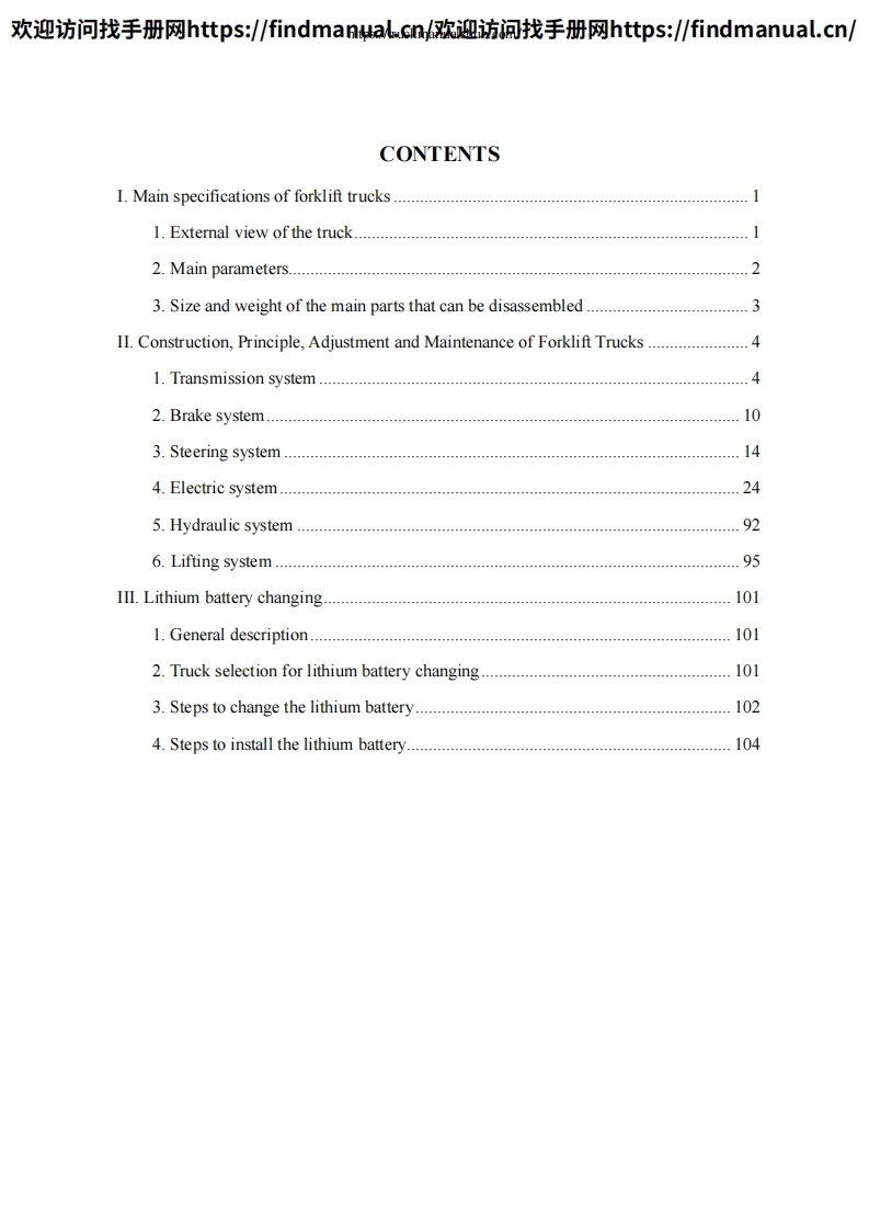 安徽合力叉车HELI-G3-Series-Operation—Service-Manual维修说明书手册含电器液压原理图找手册网昨天发布关注私信4.80MB110页024安徽合力叉车HELI-G3-Series-Operation—Service-Manual维修说明书手册含电器液压原理图此内容为付费资源,请付费后查看¥29¥39黄金会员免费钻石会员免费登录购买付费资源 第1页 / 共110页 第2页 / 共110页 第3页 / 共110页 第4页 / 共110页 第5页 / 共110页 第6页 / 共110页 第7页 / 共110页 第8页 / 共110页 第9页 / 共110页 第10页 / 共110页 试读已结束,还剩100页,您可下载完整版后进行离线阅读 THE END三一/合力/大连叉车/丰田叉车/林德叉车/三菱叉车/永恒力 文本预览 https://truckmanualshub.com/H三IOPERATION SERVICEMANUALG3 Series Lithium Battery CounterbalancedForklift Trucks4-5t 查看更多 收起部分 喜欢就支持一下吧收藏