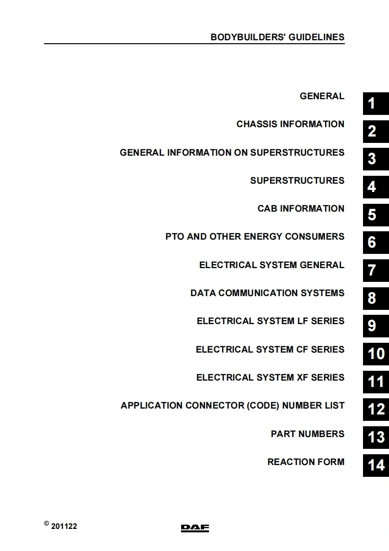 达夫卡车DAF-LF-CF-and-XF105-Bodybuilders-Guidelines维修手册资料找手册网昨天发布关注私信10.87MB438页026达夫卡车DAF-LF-CF-and-XF105-Bodybuilders-Guidelines维修手册资料此内容为付费资源,请付费后查看¥39¥49黄金会员免费钻石会员免费登录购买付费资源 第1页 / 共438页 第2页 / 共438页 第3页 / 共438页 第4页 / 共438页 第5页 / 共438页 第6页 / 共438页 第7页 / 共438页 第8页 / 共438页 第9页 / 共438页 第10页 / 共438页 试读已结束,还剩428页,您可下载完整版后进行离线阅读 THE ENDMan/DAF 文本预览 山画CFDA日Bodybuilder guidelinesDAF LF,CF and XF105Update:2011-22DAF 查看更多 收起部分 喜欢就支持一下吧收藏