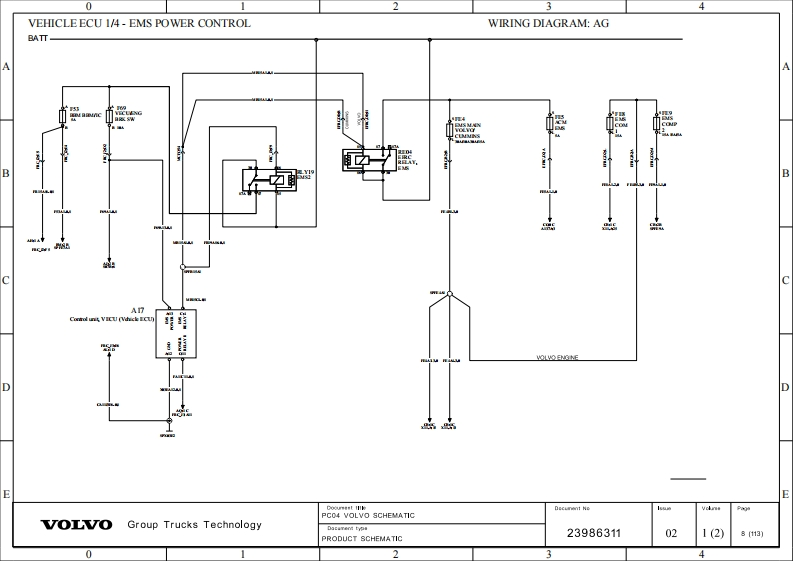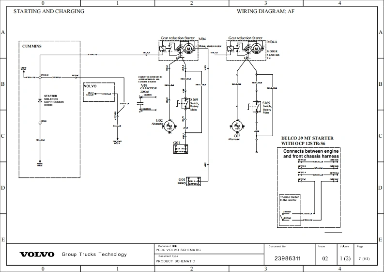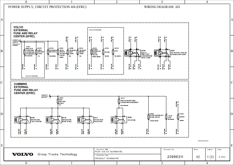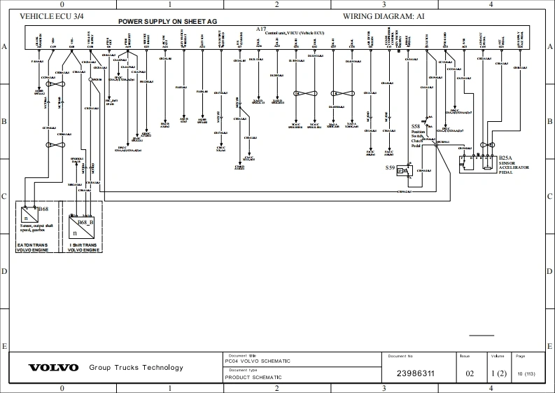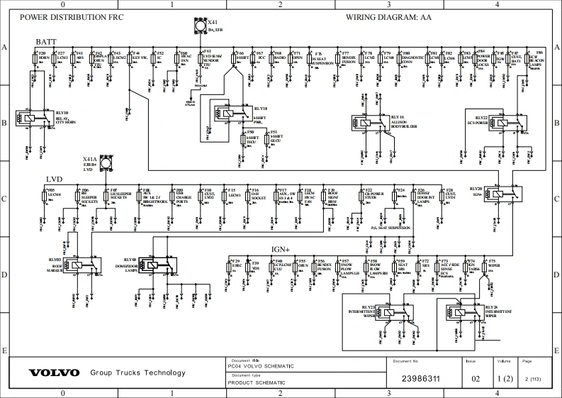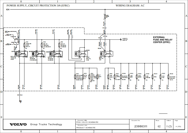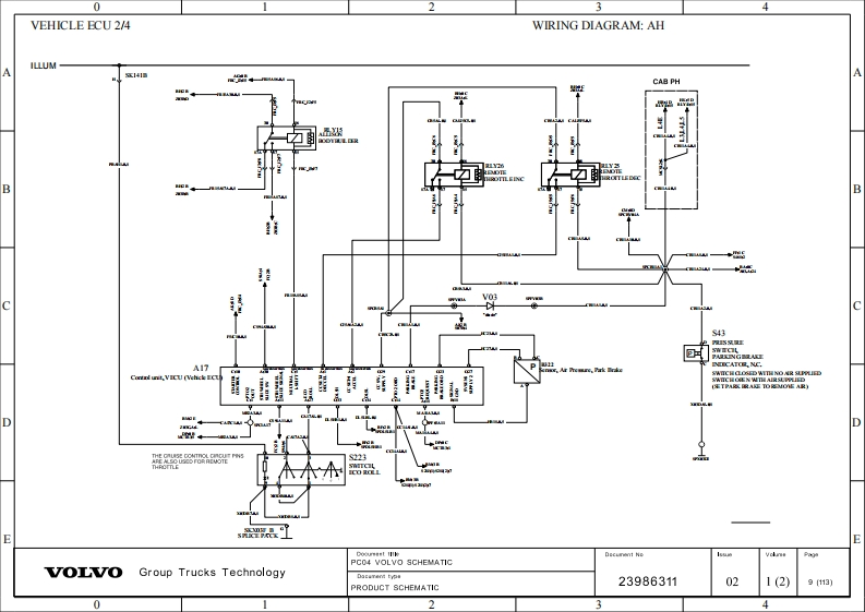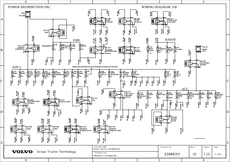 Engineering ReleaseLocationChange DescriptionA=AddedW=WasDocument Release StatusNotice (ERN)DDeletedD-18512-97See DCNRELEASEDWIRING DIAGRAM INDEXNAME DESCRIPTIONPAGENAME DESCRIPTIONPAGEAAPOWER DISTRIBUTION FRCGDDRIVING/SIGNAL LIGHTS60ARPOWER DISTRIBUTION FRCDRIVING/FOG LIGHTSACPOWER SUPPLY,CIRCUIT PROTECTION 3/4 (EFTAIL LAMPS W/ALARM62ADPOWER SUPPLY,CIRCUIT PROTECTION 4/4 (BF 7GGBACK OF CAB LAMPS LI63ABGROUNDINGGHBACK OF CAB LED LAMPS L3,L4,L564甲STARTING AND CHARGINGSNOW PLOW AND BEACON LAMPS65AGVEHICLE ECU1/4·EMS POWER CONTRO10GBEACON LAMPS6AHVEHICLE ECU 2/411GKBACK UP LAMPS WITH ALARM67工VEHICLE ECU 3/4GPWINDSHIELD WASHER63AVEHICLE ECU 4/4.ENGINE BRAKE SWITCHES13GOHORN69AKPOWER SUPPLY MANUAL TRANS START14ACLIMATE CONTROLALGROUNDING OPTIONS15HBSLEEPER BASE CLIMATE CONTROL W.LECM71AMCHARGING AND POWER CABLE OPTIONSHCSHORE POWERANGROUNDING OPTIONS17HDSLEEPER W/LECM L4EHUN证AQPOAER DISTRIEUTIONHEgLEB卫ERN/LECM I4E74BAINSTRUMENT CLUSTER 1/219HPL3-L4 SLEEPER FUNCTIONS/LIGHTING/REFRIBBINSTRUMENT CLUSTER 2/220HGL5HA SLEEPER FUNCTIONS76BBCOMMUNICATIONS QUALCOMM/OMNIVISION21HICAB MANTINVERTER W/SHOREPOWER77BPTMC RP1226 PEOPLENET PREP KIT22HJAUXILLIARY 12V PARK COOLING SYSTEM L4E78BHBODYBUILDER2HKSLEEPER CLIMATE CONTROLL3.4.5BJTELEMATICS GATEWAY (TGW)24HLAUXILLARY 12V PARK COOLING SYSTEM L4 AND 80BLBATTERY BUSSING25INTERIOR COURTESYBMBODYBUILDER MODULE26IBHEATED WINDSHIELD82BPTSX·G FUEL SYSTEM27T门POWER WINDOWS/MIRRORS83BYCUMMINS ADEPT28POWER WINDOWS/MIRRORSTURNGNAL84CAETHER START/ENGINE HEATER29CENTRAL/REMCTE DOORCBENGINE CONTROL-VOLVO ENGINE30IGCIGAR LIGHTER/OWER(DASH RADIO SHE 86CBFUIEL FTLTER HEATER31THRRTHRKCGUREA DOSING SYSTEM0BD201932IRSEAT BELTS.HBA日88CHINSIDE/OUTSIDE AIR CLEANER33SEAT BOSE89CLENGINE CONTROL ISX-G 1/24TASRS AIR用AG CONTRO190CMMETHANE DETECTION35ADAPTIVE CRUISE CONTROL91NENGINE CONTROL·TSX1/36SIDE OBJECT DETECTION SYSTEM92CPENGINE CONTROL ISX US 2/237JGLANE DEPARTURE WARNING SYSTEM93DATRANSM工SSION I=SHIET38THSEAT SRS94DBTRANSMISSION CONTROL EATON AUTOMATICS39KDAUDIO SYSTEM.BLUETOOTHAUX/USB95DCTRANSMISSION EATON ENDURANT40AUDIO SYSTEM:DEA 500 SERIES RADIO-4 SP 96DETRANSMISSION CONTROL ALLISON 1/241AUDIO SYSTEM-DEA 500 SERIES RADIO-6 SP 97DFTRANSMISSION CONTROL ALLISON 1/242KGAUDIO SYSTEM-DEA 500 SERIES RADIO-6 SP 98DPPT4CAUDIO SYSTEM:SEM 4-SPEAKER AND AUX INPU 99EBSUSPENSION44AUDIO SYSTEM-SEM RADIO 6-SPBAKER100ECABS CONTROL BENDIX 1/245SEM AUDIO UNIT101EDABS CONTROL BENDIX ESC (BLECTRONIC STABI 46KOINPOTAINMENT102EEBRAKES TABS647MATRAILER CABLE1D3HSUSPENSION LIPTABLE PUSHER48MBTRAILER CABLE OPTIONS104FAA工R DRYER/HEATED DRAT时ALrB49CTRA工LER CABLES/BODY B可ILDER BOX105LIFT AXLES VHD50AAUXILIARY SWITCHE106FCSUSPENSION DUMP,STH WHEEL SLIDE51DH.D.POWER LIFT GATE107FDDIFFERENTIAL LOCK VN/VHD52XADIAGNOSTICS 1/3(DL4·J1587&DL2·J2284108FEPUSHER OVERRIDE 8X253XBDIAGNOSTIC CONNECTOR SCENARIOS109E甲STH WHEEL LOCKDIAGNOSTICS DL1·110TIRE PRESSURE MONITORING SYSTEM55DIAGNOSTICS 2/3 (DL1-1939)VOLVO OBD111FHDYNAMIC STBERING5XGDIAGNOSTICS 2/3 (DL1-1939)ISX GA
