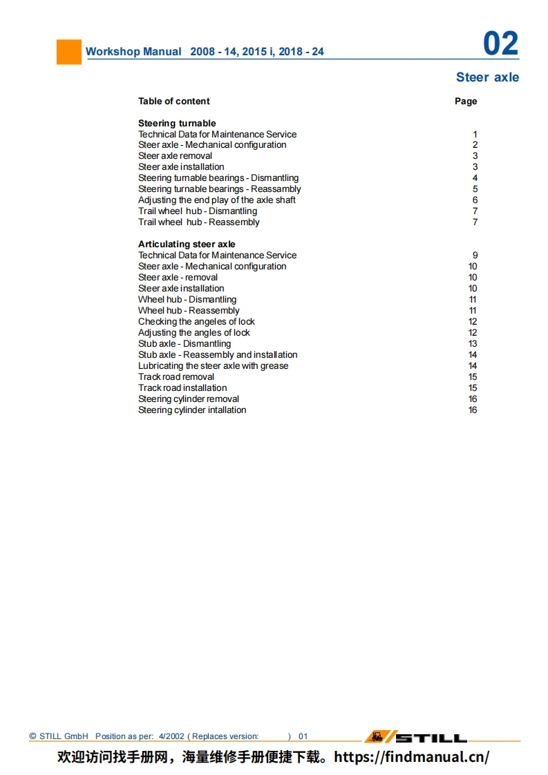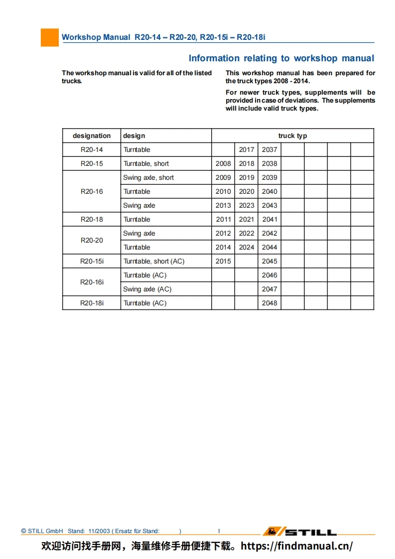 R20-15R20-16R20-18R20-20Elektro GabelstaplerElectric Fork TruckChariot elevateur electriqueCarretilla elevadora elettrica17ILSW3LSASsa3LsWerk-Work-ManuelManualstatt-shopd'Atelierde tallerhandbuchmanualR2017-2024R2037-2044R2008-2014R20151R2045I-2048Ident-Nr.164526 (en)STILLGm bH欢迎访问找手册网,海量维修手册便捷下载。https:/findmanual.cn/
