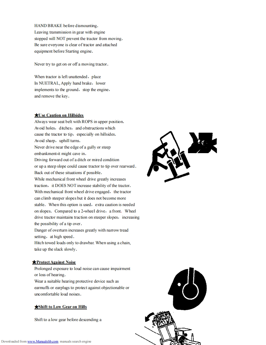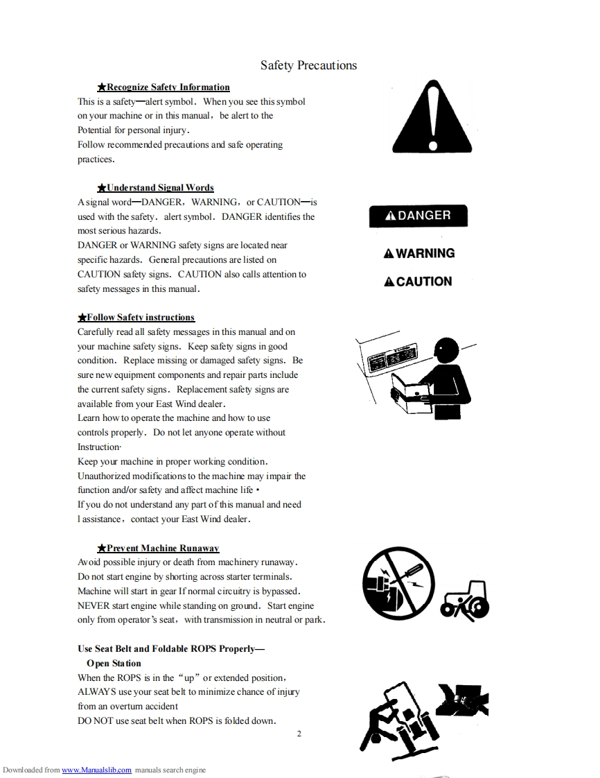 CONTENTS Service Manual 304G2SafetyPrecautionsAEMEENANNENNENAE NNNNEE N NNNANNE M EE N AN MChapter IWork safely Always and safety Rules .........................14Chapter IlTechnical Specifications of the Tractor..........................18Chapter IllRunning-in of the Tractor....23Chapter IVOperating the Tractor..25Chapter VAdjustments of the Tractor...................31Chapter VILubrication and Maintenance of the Tractor......................43Chapter VIlTroubles and Trouble-shooting......................47Appendix 1Moving Locus Diagram of Lifting Linkages.................................57Appendix 2Moving Locus Diagram of Lifting Linkages..................58Appendix 3Diagram of Electrical System Principle59Appendix 4ListofRubberOil-sealandO-ring60Seal.........................Appendix 5List of Bearings.………62Appendix 6Tightening Torque Table of Main Bolts and Nuts........................63Appendix 7Optional Accessories.63Appendix 8List of Attached Tools......……64Appendix 9Packing65List.”8a日8aPRE-DELIVERY SERVICE.66Downloaded from www.Manualslib.com manuals search engine