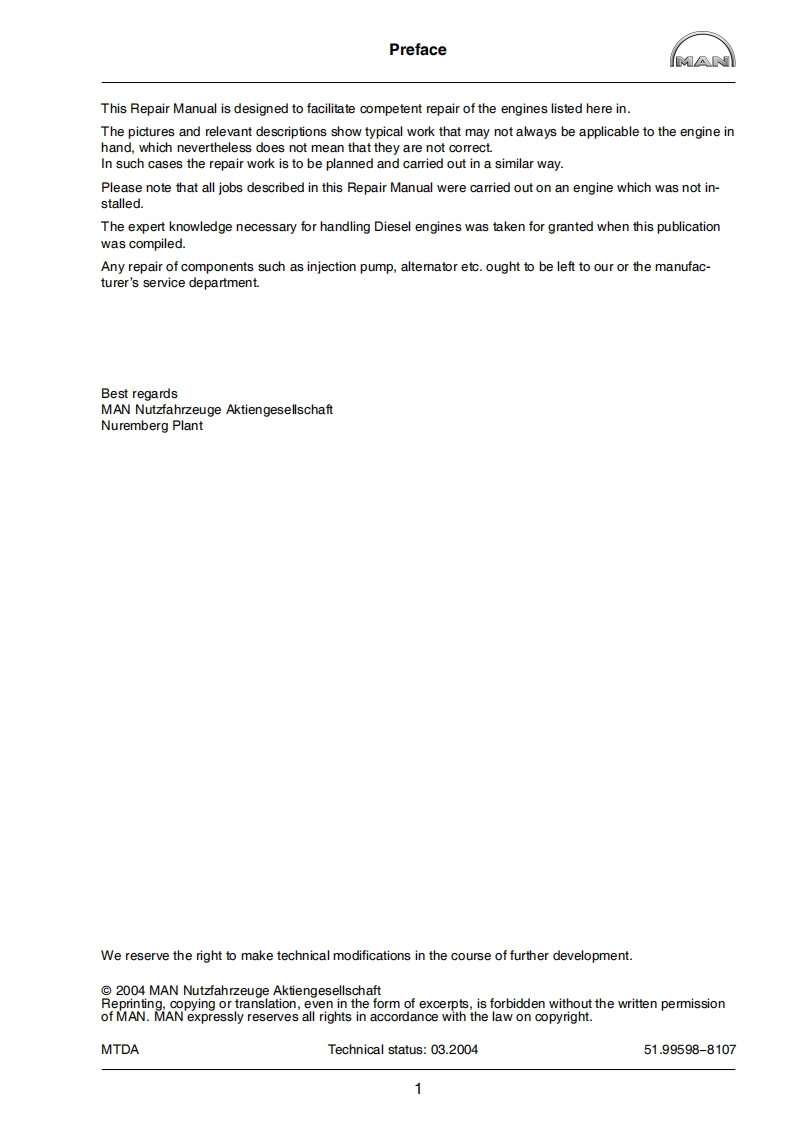 曼卡车MAN-D2876LUE-repair-manual维修手册找手册网昨天发布关注私信23.71MB182页035曼卡车MAN-D2876LUE-repair-manual维修手册此内容为付费资源,请付费后查看¥39¥49黄金会员免费钻石会员免费登录购买付费资源 第1页 / 共182页 第2页 / 共182页 第3页 / 共182页 第4页 / 共182页 第5页 / 共182页 第6页 / 共182页 第7页 / 共182页 第8页 / 共182页 第9页 / 共182页 第10页 / 共182页 试读已结束,还剩172页,您可下载完整版后进行离线阅读 THE ENDMan/DAF 文本预览 Repair manualMANIMAN Industrial Diesel EnginesD2876LUE601D2876LUE602D2876LUE603D2876LUE604D2876LUE605D2876LUE606 查看更多 收起部分 喜欢就支持一下吧收藏