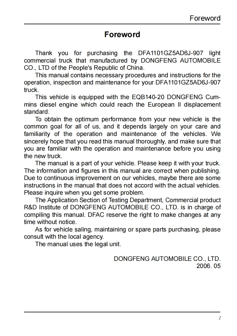东风Dongfeng-DFA1101GZ5AD6J-907-Operational-Manual_compressed车辆维修手册找手册网15小时前发布关注私信0.78MB92页037东风Dongfeng-DFA1101GZ5AD6J-907-Operational-Manual_compressed车辆维修手册此内容为付费资源,请付费后查看¥29¥39黄金会员免费钻石会员免费登录购买付费资源 第1页 / 共92页 第2页 / 共92页 第3页 / 共92页 第4页 / 共92页 第5页 / 共92页 第6页 / 共92页 第7页 / 共92页 第8页 / 共92页 第9页 / 共92页 第10页 / 共92页 试读已结束,还剩82页,您可下载完整版后进行离线阅读 THE END重汽/东风/一汽 文本预览 DFA1101GZ5AD6J-907Light Commercial TruckOperation ManualDONGFENG AUTOMOBILE CO..LTD2006,05 查看更多 收起部分 喜欢就支持一下吧收藏