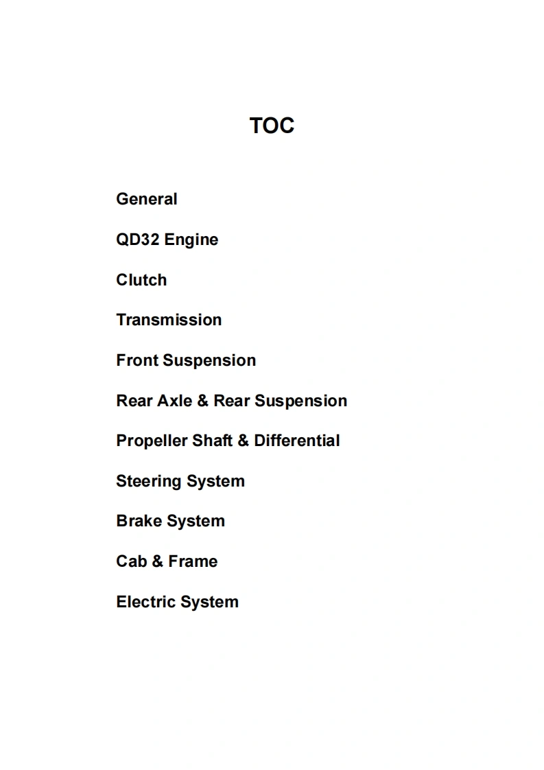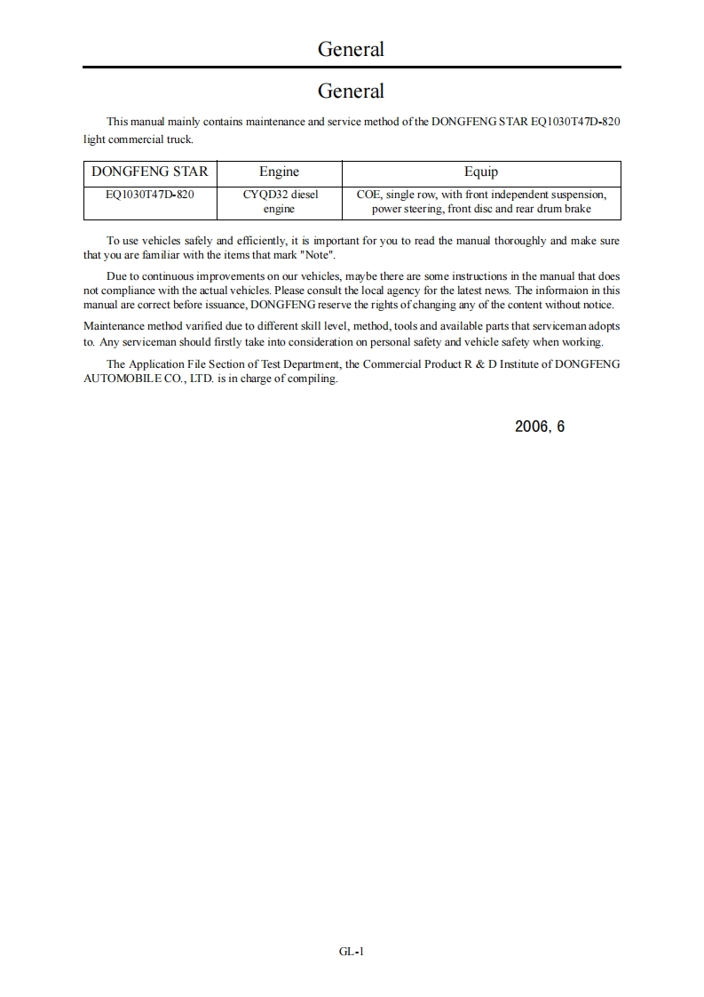 东风Dongfeng-EQ1030T47D-820-Service-Manual_compressed车辆维修手册找手册网15小时前发布关注私信1.95MB175页047东风Dongfeng-EQ1030T47D-820-Service-Manual_compressed车辆维修手册此内容为付费资源,请付费后查看¥29¥39黄金会员免费钻石会员免费登录购买付费资源 第1页 / 共175页 第2页 / 共175页 第3页 / 共175页 第4页 / 共175页 第5页 / 共175页 第6页 / 共175页 第7页 / 共175页 第8页 / 共175页 第9页 / 共175页 第10页 / 共175页 试读已结束,还剩165页,您可下载完整版后进行离线阅读 THE END重汽/东风/一汽 文本预览 EQ1030T47D-820Light Commercial TruckService ManualPEOPLE'S REPUBLIC OF CHINADONGFENG AUTOMOBIL CO..LTD.2006,6 查看更多 收起部分 喜欢就支持一下吧收藏