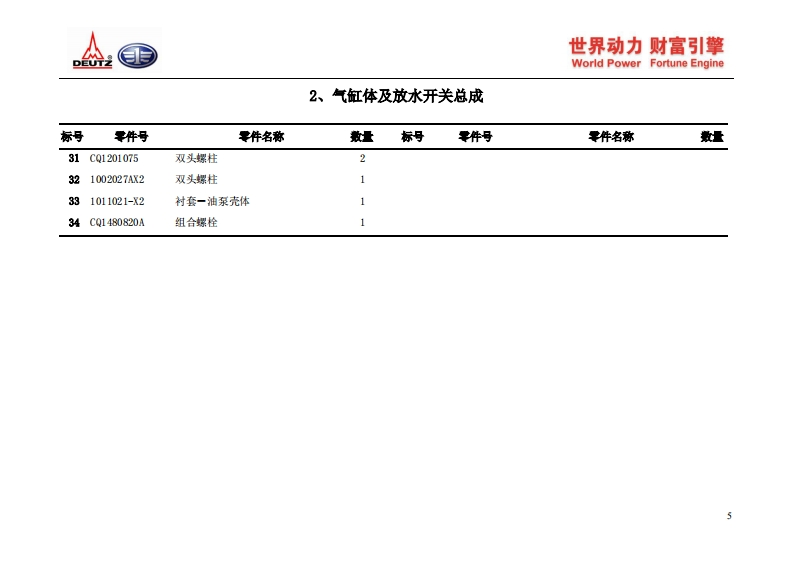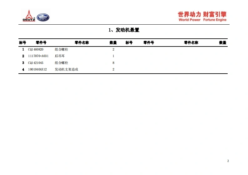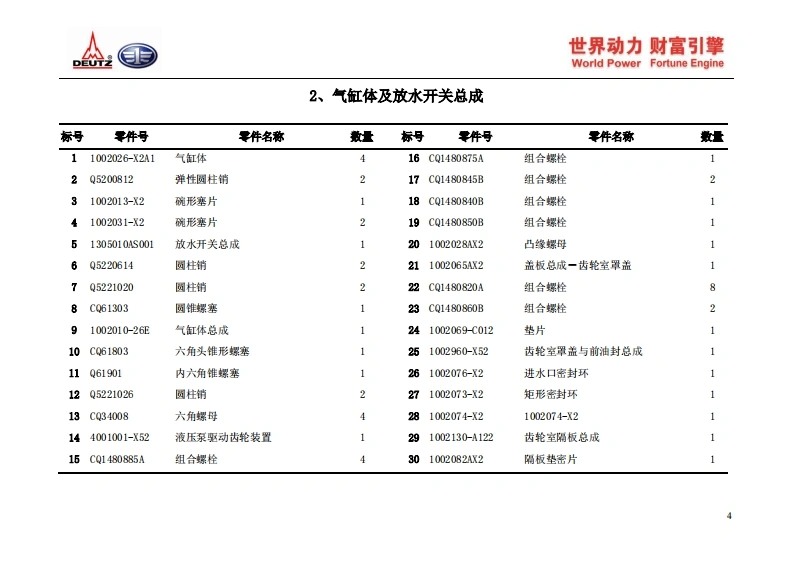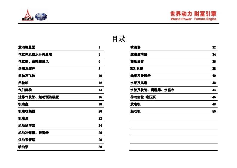 一汽FAW_DEUTZ_CA498维修用零部件手册备件目录图册找手册网14小时前发布关注私信1.89MB53页052一汽FAW_DEUTZ_CA498维修用零部件手册备件目录图册此内容为付费资源,请付费后查看¥29¥39黄金会员免费钻石会员免费登录购买付费资源 第1页 / 共53页 第2页 / 共53页 第3页 / 共53页 第4页 / 共53页 第5页 / 共53页 第6页 / 共53页 第7页 / 共53页 第8页 / 共53页 第9页 / 共53页 第10页 / 共53页 试读已结束,还剩43页,您可下载完整版后进行离线阅读 THE END重汽/东风/一汽 文本预览 GA498非道路T3柴油机零件明细道依茨一汽(大连)柴油机有限公司DEUTZDEUTZ(DALIAN)ENGINE CO.,LTD 查看更多 收起部分 喜欢就支持一下吧收藏