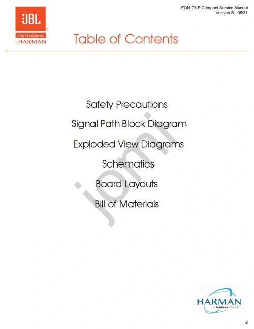 JBL-EON-ONE-SERVICE-MANUAL维修手册含电器原理图找手册网2小时前发布关注私信7.11MB28页028JBL-EON-ONE-SERVICE-MANUAL维修手册含电器原理图此内容为付费资源,请付费后查看¥29¥39黄金会员免费钻石会员免费立即购买您当前未登录!建议登陆后购买,可保存购买订单付费资源 第1页 / 共28页 第2页 / 共28页 第3页 / 共28页 第4页 / 共28页 第5页 / 共28页 第6页 / 共28页 第7页 / 共28页 第8页 / 共28页 第9页 / 共28页 第10页 / 共28页 试读已结束,还剩18页,您可下载完整版后进行离线阅读 THE END机械 文本预览 EON ONE Compact Service ManualVersion B-05/21JBLP发OFE55ONALHARMANService ManualEON ONE CompactAll-in-One Rechargeable Personal PA@HARMANA脑时0内N1 查看更多 收起部分 喜欢就支持一下吧收藏