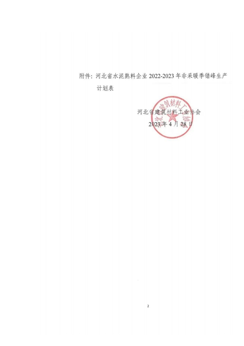 河北省建筑材料工业协会文件冀建协发〔2023]13号河北省水泥熟料企业2022-2023年非采暖季错峰生产计划公开信息根据《河北省工业和信息化厅河北省生态环境厅关于印发<河北省水泥常态化错峰生产工作方案>的通知》(冀工信原函〔2021〕730号)、《关于做好2022-2023年度水泥错峰生产工作的通知》(冀工信原函〔2022〕604号)精神,现将全省水泥熟料企业2022-2023年非采暖季错峰生产计划面向社会公开信息,欢迎社会公众进行监督。联系人:陈桂东18210789666刘建立18733901188》