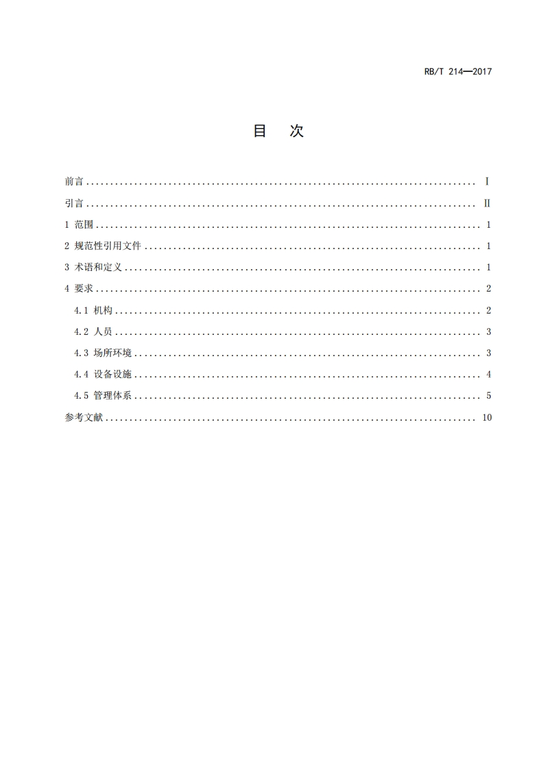 1C503.120.20A00RB中华人民共和国认证认可行业标准RB/T214-2017检验检测机构资质认定能力评价检验检测机构通用要求Competence assessment for inspection body and laboratory mandatoryapproval-Genaral requirements for inspection body and laboratory2017-10-16发布2018-05-01实施中国国家认证认可监督管理委员会发布