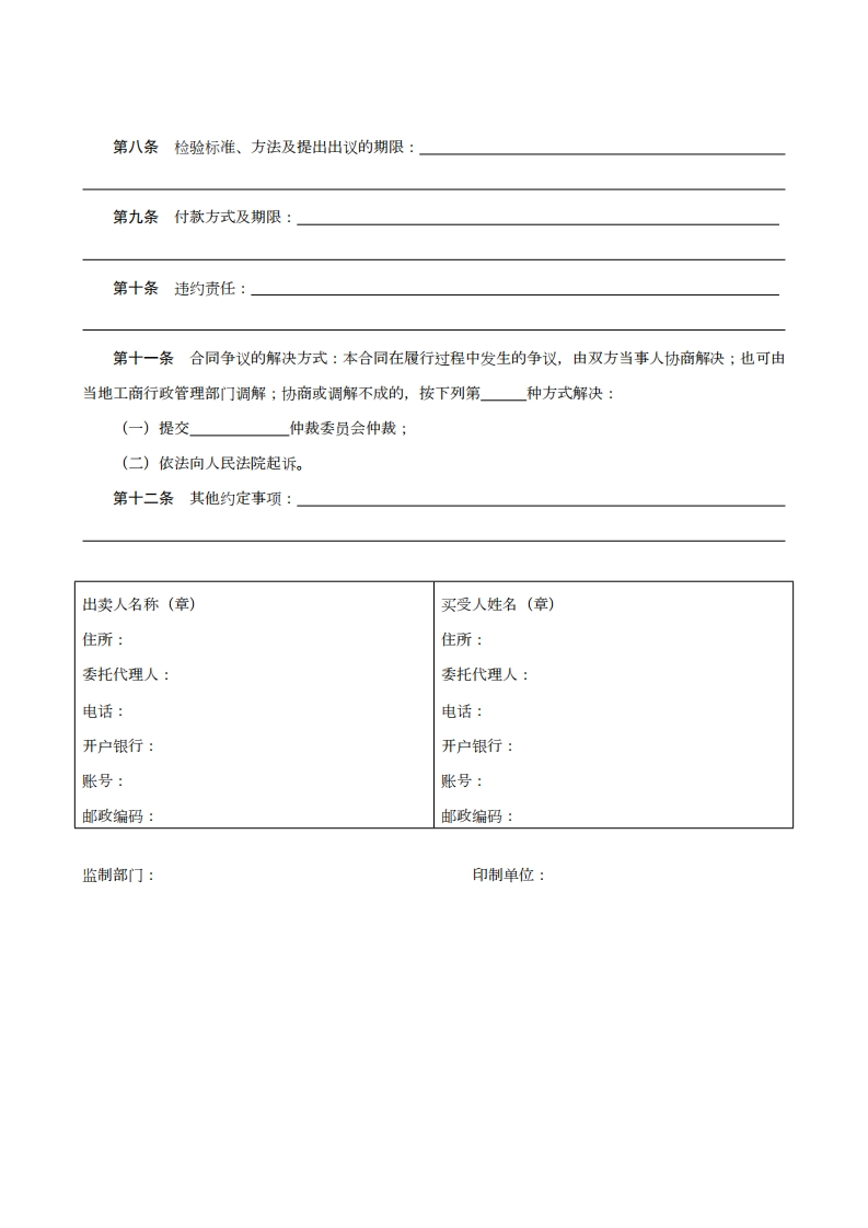 家具买卖合同348072@abc2个月前发布关注私信75.60KB2页0388家具买卖合同此内容为付费资源,请付费后查看¥16¥19黄金会员免费钻石会员免费立即购买您当前未登录!建议登陆后购买,可保存购买订单付费资源 第1页 / 共2页 第2页 / 共2页 已完成全部阅读,共2页 © 版权声明文章版权归作者所有,未经允许请勿转载。THE ENDPPT模板 文本预览 GF-20000105家具买卖合同(示范文本)合同编号:出卖人:签订地点:买受人:签订时间:年月日第一条家具名称、数量、价款家具名称商标或品牌规格型号材质颜色生产厂家数量单价金额合计人民币金额(大写):(注:空格如不够用,可以另接)第二条质量标准:第三条家具保修期为月,在保修期内出现家具质量问题,由出卖人在天内修好或更换,修理不好或不能更换的,予以退货。第四条定做家具图纸提供办法及要求:第五条交货时间:第六条交(提)货方式、地点:第七条运输方式及费用负担: 查看更多 收起部分 喜欢就支持一下吧点赞8 分享QQ空间微博QQ好友海报分享复制链接收藏