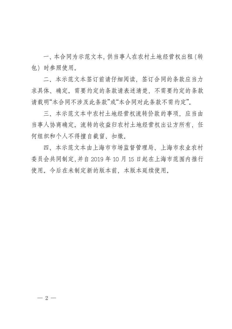 上海市农村土地经营权流转合同示范文本(2019版)348072@abc3个月前发布关注私信58KB10页037上海市农村土地经营权流转合同示范文本(2019版)此内容为付费资源,请付费后查看¥16¥19黄金会员免费钻石会员免费立即购买您当前未登录!建议登陆后购买,可保存购买订单付费资源 第1页 / 共10页 第2页 / 共10页 试读已结束,还剩8页,您可下载完整版后进行离线阅读 THE ENDPPT模板 文本预览 附件编号:上海市农村土地经营权流转合同示范文本(2019版)上海市市场监督管理局制定上海市农业农村委员会使用说明1 查看更多 收起部分 喜欢就支持一下吧收藏