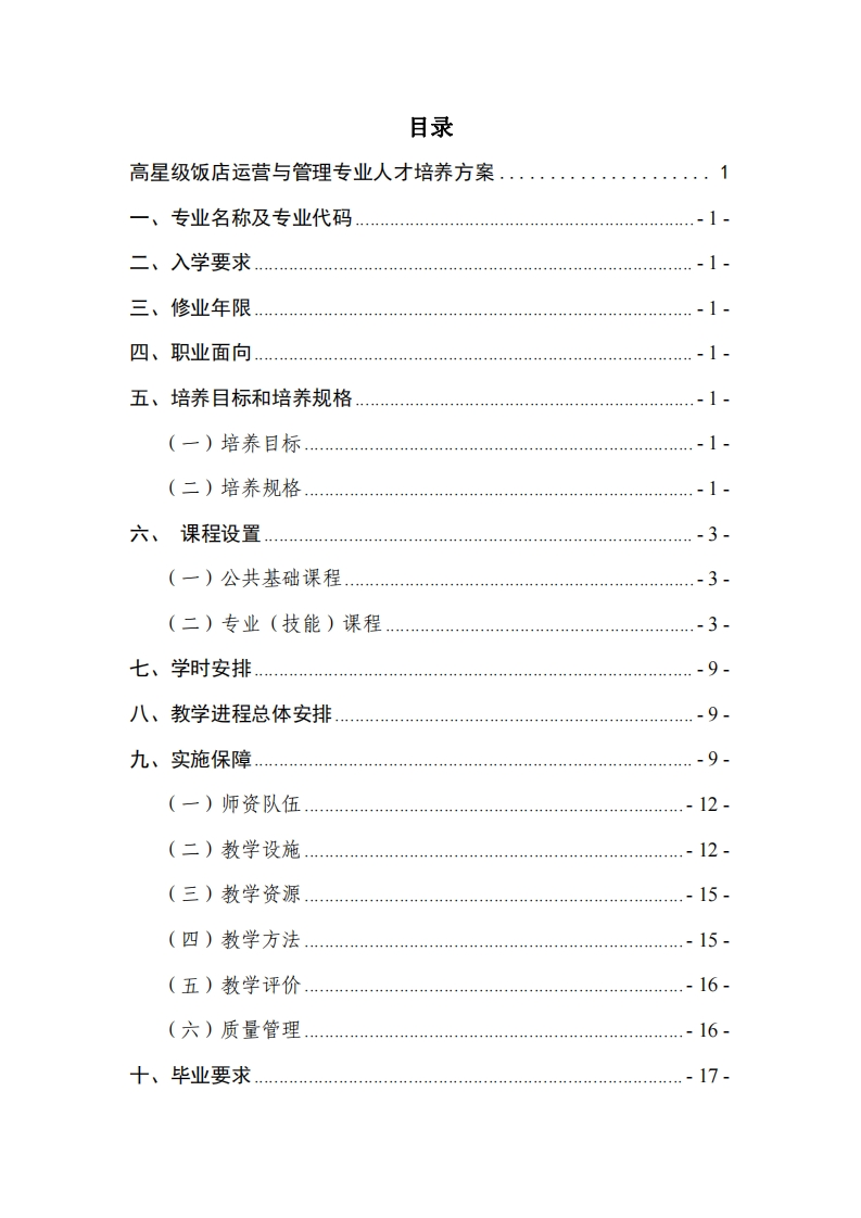 高星级饭店运营与管理专业人才培养方案348072@abc4个月前发布关注私信0.72MB31页032高星级饭店运营与管理专业人才培养方案此内容为付费资源,请付费后查看¥16¥22黄金会员免费钻石会员免费立即购买您当前未登录!建议登陆后购买,可保存购买订单付费资源 第1页 / 共31页 第2页 / 共31页 试读已结束,还剩29页,您可下载完整版后进行离线阅读 THE END规章制度 文本预览 问南省商务中等职业学亦LNAN BUSINESS VOCATION1949SCHOOL高星级饭店运营与管理专业人才培养方案(专业代码:740104)专业负责人王琼阁编制部门康养文旅系审核部门学校专业建设指导委员会编制时间2024年3月 查看更多 收起部分 喜欢就支持一下吧收藏