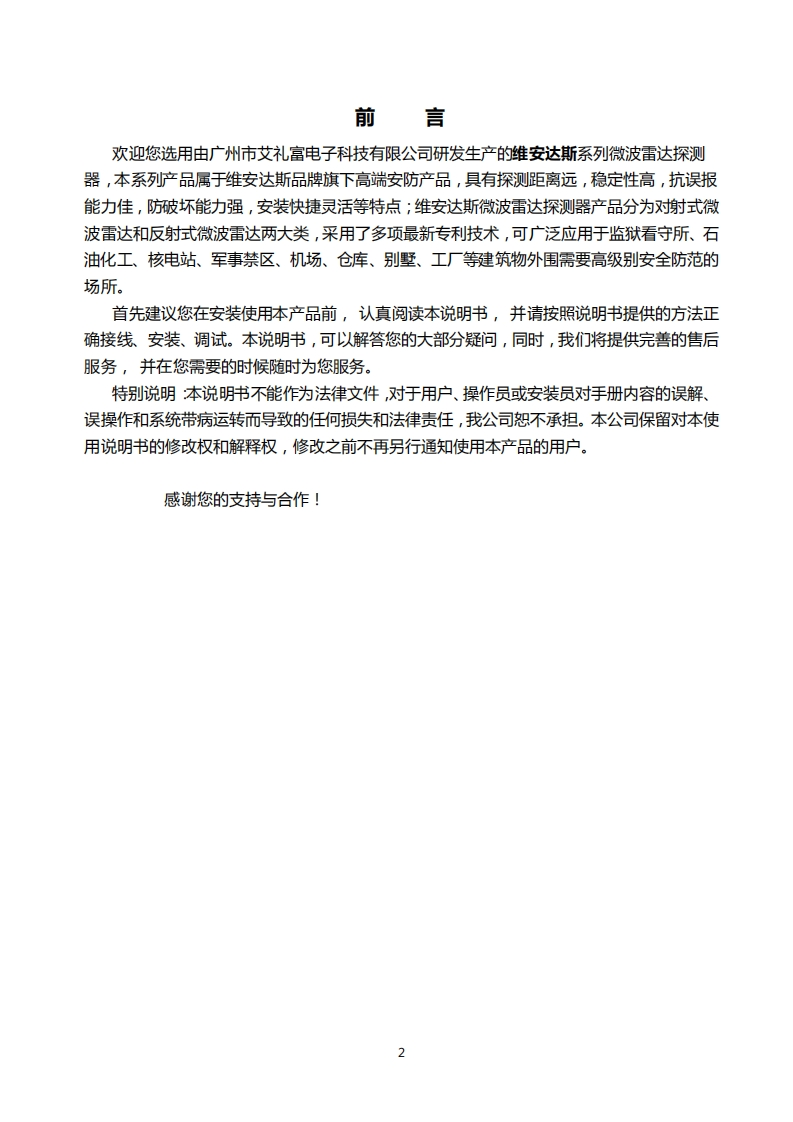 维安达斯对射式微波雷达探测器说明书348072@abc3个月前发布关注私信0.91MB11页040维安达斯对射式微波雷达探测器说明书此内容为付费资源,请付费后查看¥21¥31黄金会员免费钻石会员免费立即购买您当前未登录!建议登陆后购买,可保存购买订单付费资源 第1页 / 共11页 第2页 / 共11页 试读已结束,还剩9页,您可下载完整版后进行离线阅读 THE END说明书手册 喜欢就支持一下吧收藏