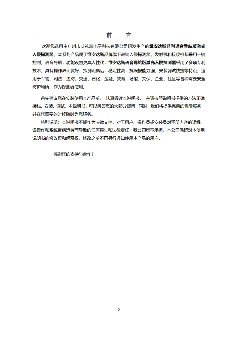 维安达斯语音导航版激光对射探测器说明书348072@abc3个月前发布关注私信1.27MB15页037维安达斯语音导航版激光对射探测器说明书此内容为付费资源,请付费后查看¥21¥31黄金会员免费钻石会员免费立即购买您当前未登录!建议登陆后购买,可保存购买订单付费资源 第1页 / 共15页 第2页 / 共15页 试读已结束,还剩13页,您可下载完整版后进行离线阅读 THE END说明书手册 喜欢就支持一下吧收藏