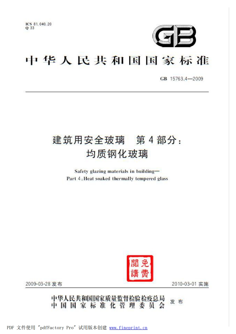 GB15763.4-2009建筑用安全玻璃-第4部分:均质钢化玻璃348072@abc5个月前发布关注私信1.49MB25页042GB15763.4-2009建筑用安全玻璃-第4部分:均质钢化玻璃此内容为付费资源,请付费后查看¥23¥31黄金会员免费钻石会员免费立即购买您当前未登录!建议登陆后购买,可保存购买订单付费资源 第1页 / 共25页 第2页 / 共25页 试读已结束,还剩23页,您可下载完整版后进行离线阅读 THE END标准规范 喜欢就支持一下吧收藏