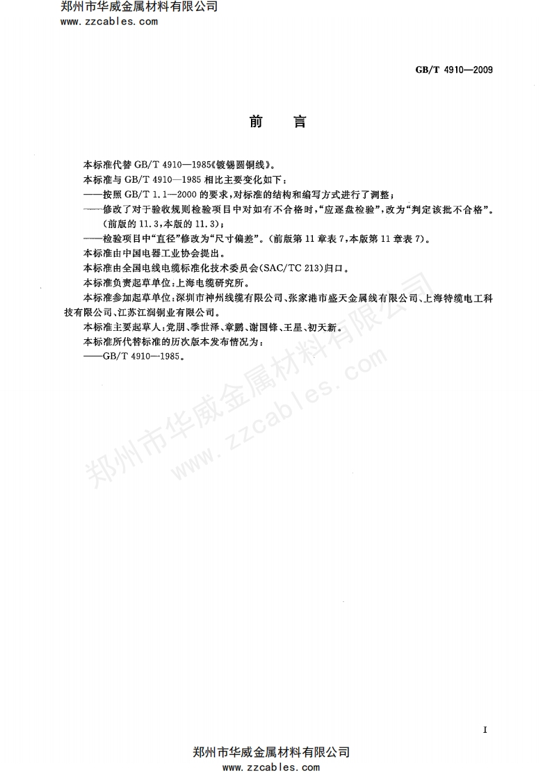 GB-T-4910-2009-镀锡圆铜线348072@abc2个月前发布关注私信0.12MB5页024GB-T-4910-2009-镀锡圆铜线此内容为付费资源,请付费后查看¥17¥23黄金会员免费钻石会员免费立即购买您当前未登录!建议登陆后购买,可保存购买订单付费资源 第1页 / 共5页 第2页 / 共5页 试读已结束,还剩3页,您可下载完整版后进行离线阅读 THE END标准规范 文本预览 郑州市华威金属材料有限公司w.z5.000.1os.comK11中华人民共和国国家标准GB/T4910-2009代替GB/T4910一1985镀锡圆铜线Tinned round copper wire郑州市华威金www.zzcables2009-03-19发布2009-12-01实施中华人民共和国国家质量监督检验检疫总局中国国家标谁化管理委员会发布郑州市华威金属材料有限公司www.zzcables.com 查看更多 收起部分 喜欢就支持一下吧收藏