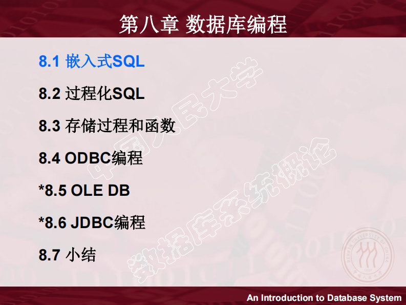 20150105第5版PPT-第8章-数据库编程–提交版348072@abc1个月前发布关注私信3.89MB139页03320150105第5版PPT-第8章-数据库编程–提交版此内容为付费资源,请付费后查看¥16¥24黄金会员免费钻石会员免费立即购买您当前未登录!建议登陆后购买,可保存购买订单付费资源 第1页 / 共139页 第2页 / 共139页 试读已结束,还剩137页,您可下载完整版后进行离线阅读 THE ENDJAVA开发Matlab仿真单片机设计安卓开发实习实践小程序设计物联网设计理学类网站设计网络规划设计 文本预览 数据库系统概论An Introduction to Database System第八章数据库编程中国人民大学信息学院 查看更多 收起部分 喜欢就支持一下吧收藏