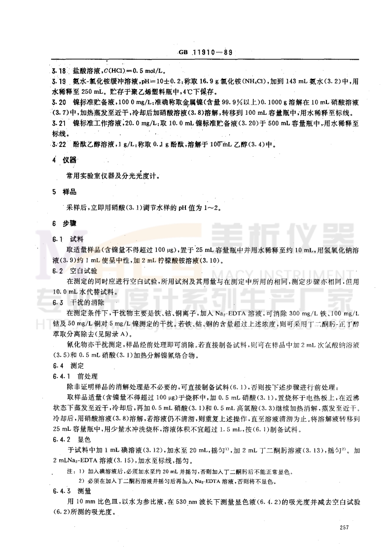 GBT-11910-1989-水质-镍的测定-丁二酮肟分光光度法