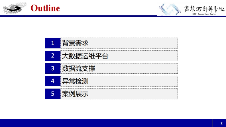 中国科攀院高能物理新究所Institute ofmigh Energy Pfysics盒郃厅計算串心Chinese Academy of.SciencesIHEP Computing Center大数据驱动的Lustre I/O异常检测Qingbao Hu(huqb@ihep.ac.cn),Lu Wang (wanglu@ihep.ac.cn)Computing Center,Institute of High Energy Physics,CAS2021CLUG