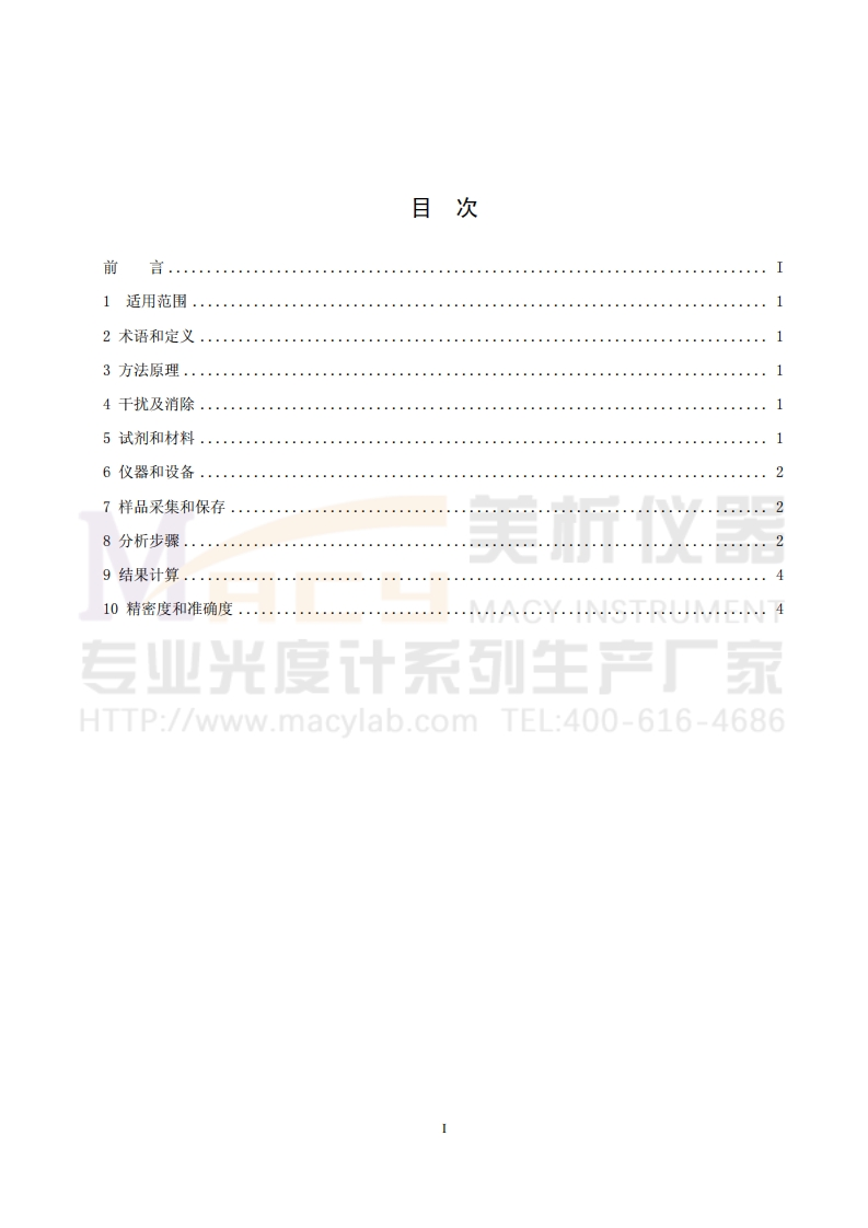 HJ中华人民共和国国家环境保护标准HⅢ485-2009代替GB7474一87水质铜的测定二乙基二硫代氨基甲酸钠分光光度法Water quality-Determination of copper-Sodium diethyd Ithiocabamate spectrophotometric methodMENT专业光度比系列生产厂家发布稿)HTTP://www.macylab.comTEL:400-616-4686本电子版为发布稿。请以中国环境科学出版社出版的正式标准文本为准。2009-09-27发布2009-11-01实施环境保护部发布