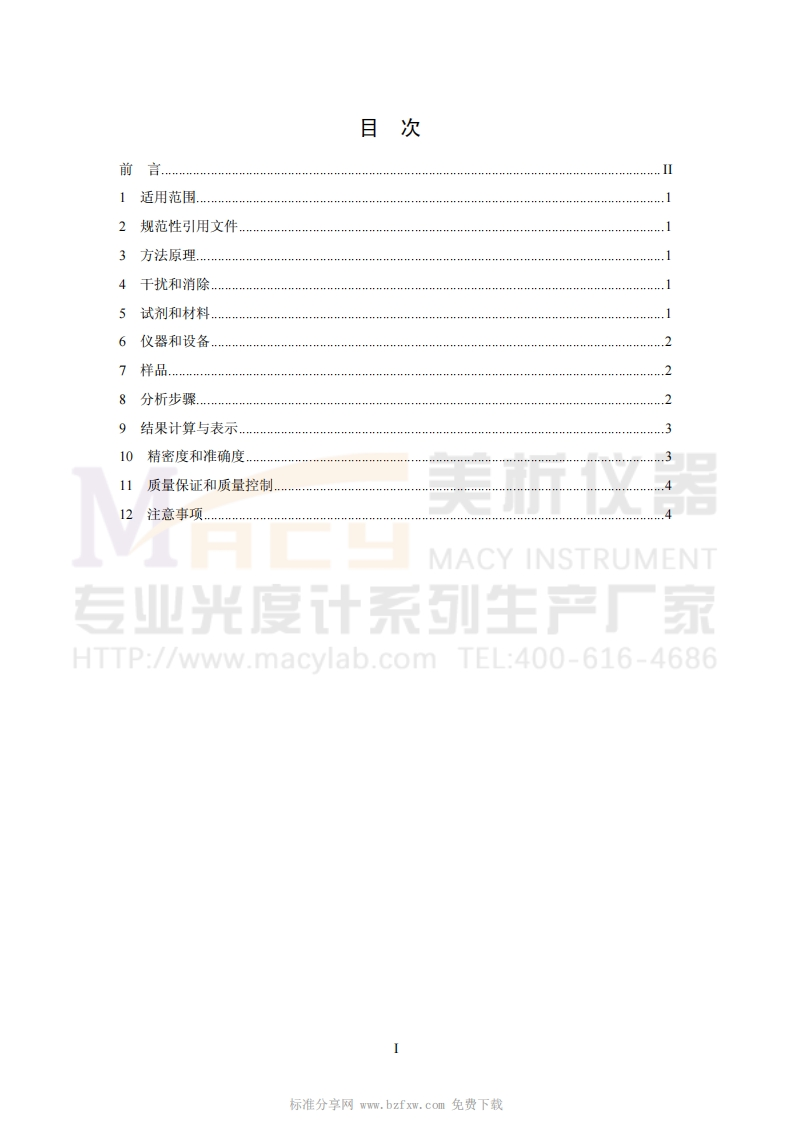 HJ中华人民共和国国家环境保护标准HJ615-2011土壤有机碳的测定重铬酸钾氧化-分光光度法Soil-Determination of Organic Carbon-Potassium Dichromate OxidationSpectrophotometric MethodINSTRUMENT本电子版为发布稿。请以中国环境科学出版社出版的正式标准文本为准。HTTP://www.macylab.com TEL:400-616-46862011-04-15发布2011-10-01实施环境保护部发布
