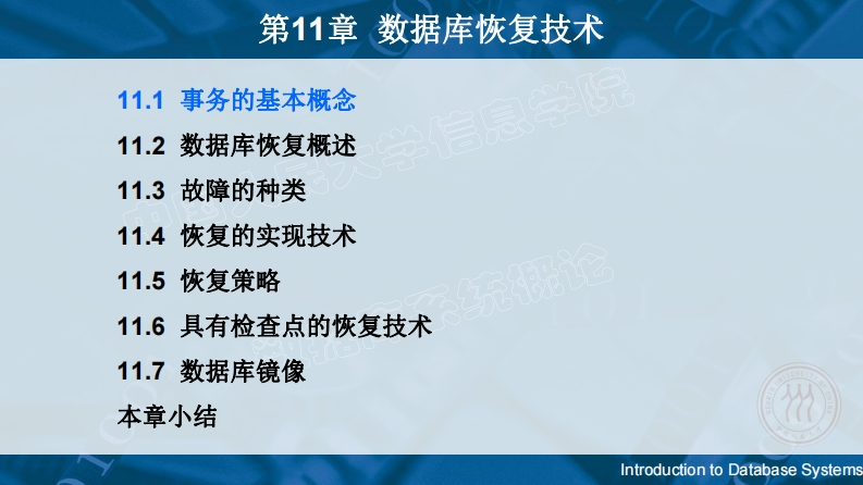第6版PPT第11章数据库恢复技术348072@abc32天前发布关注私信45.94MB94页0345第6版PPT第11章数据库恢复技术此内容为付费资源,请付费后查看¥16¥24黄金会员免费钻石会员免费立即购买您当前未登录!建议登陆后购买,可保存购买订单付费资源 第1页 / 共94页 第2页 / 共94页 试读已结束,还剩92页,您可下载完整版后进行离线阅读 © 版权声明文章版权归作者所有,未经允许请勿转载。THE ENDJAVA开发Matlab仿真单片机设计安卓开发实习实践小程序设计物联网设计理学类网站设计网络规划设计 文本预览 数据库系统概论Introduction to Database Systems第11章数据库恢复技术100中国人民大学信息学陕 查看更多 收起部分 喜欢就支持一下吧点赞5 分享QQ空间微博QQ好友海报分享复制链接收藏