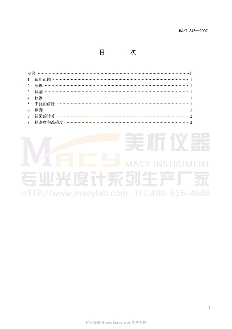 本电子版为发布稿。请以中国环境科学出版社出版的正式标准文本为准。HJ中华人民共和国环境保护行业标准HJ/T346-2007水质硝酸盐氨的测定紫外分光光度法(试行)Water quality-Determination of nitrate-nitrogenUltravioletspectrophotometryHTTP://www.macylab(发布稿)TEL:400-616-468d2007-03-10发布2007-05-01实施国家环境保护总局发布
