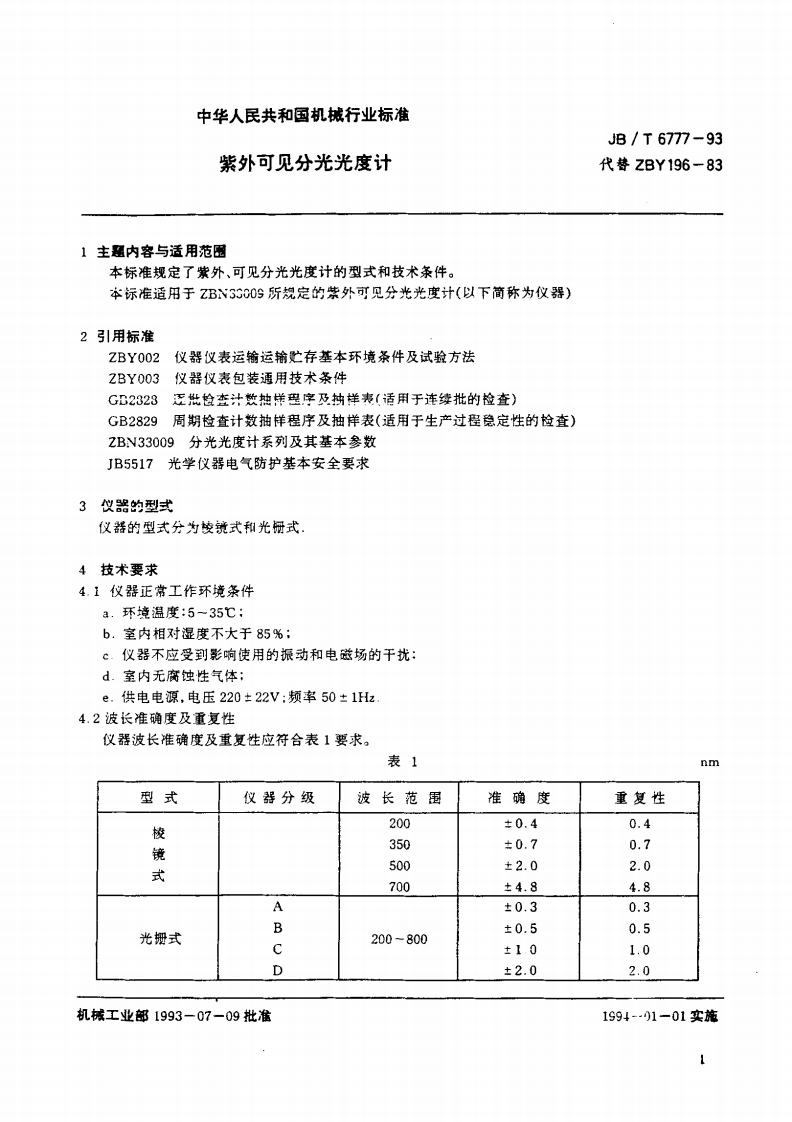 JBT-6777-1993-紫外可见分光光度计348072@abc2个月前发布关注私信0.28MB11页034JBT-6777-1993-紫外可见分光光度计此内容为付费资源,请付费后查看¥17¥23黄金会员免费钻石会员免费立即购买您当前未登录!建议登陆后购买,可保存购买订单付费资源 第1页 / 共11页 第2页 / 共11页 试读已结束,还剩9页,您可下载完整版后进行离线阅读 THE END标准规范 文本预览 JB中华人民共和国机械行业标准JB/T6777-93代替ZBY196-83紫外可见分光光度计1993-07-09发布1994一01-01实施中华人民共和国机械工业部发布 查看更多 收起部分 喜欢就支持一下吧收藏