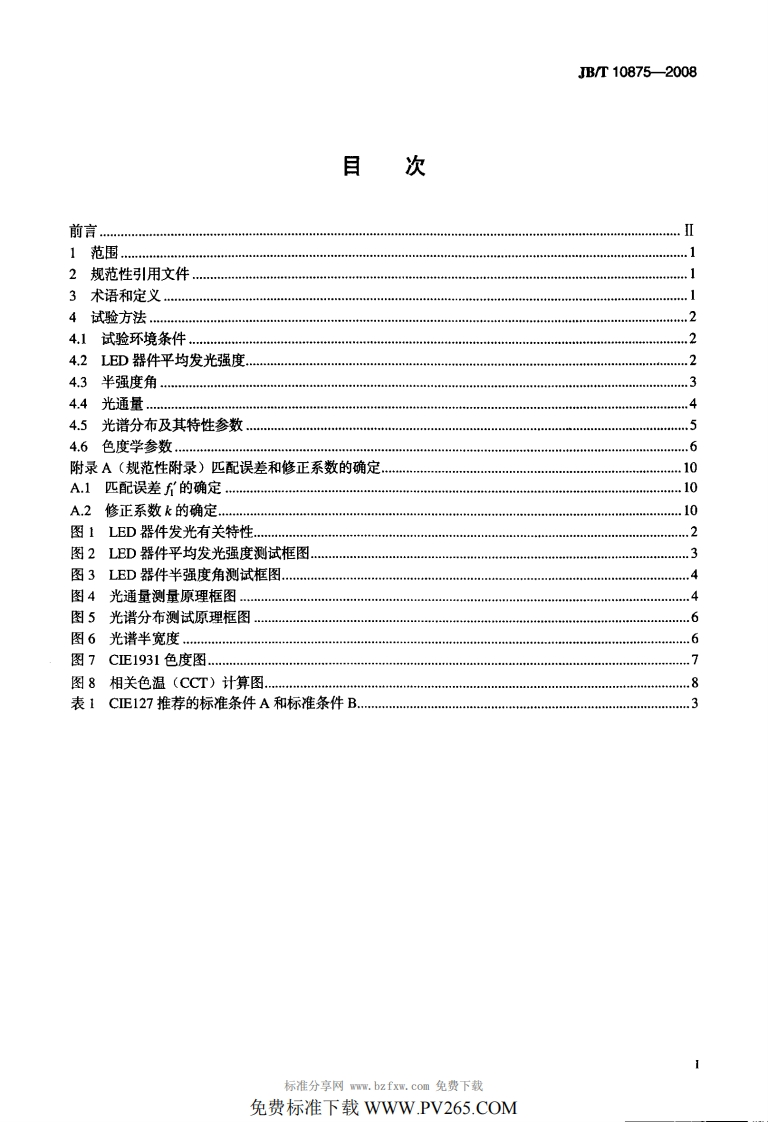 JBT-10875-2008-发光二极管光学性能测试方法348072@abc2个月前发布关注私信0.25MB13页039JBT-10875-2008-发光二极管光学性能测试方法此内容为付费资源,请付费后查看¥17¥23黄金会员免费钻石会员免费立即购买您当前未登录!建议登陆后购买,可保存购买订单付费资源 第1页 / 共13页 第2页 / 共13页 试读已结束,还剩11页,您可下载完整版后进行离线阅读 THE END标准规范 文本预览 1CS31.260L53备案号:24642-2008中华人民共和国机械行业标准JB/T10875-2008发光二极管光学性能测试方法Measuring methods for optical properties of LEDs2008-06-04发布2008-11-01实施中华人民共和国国家发展和改革委员会发布免费标准下载WWW.PV265.COM 查看更多 收起部分 喜欢就支持一下吧收藏