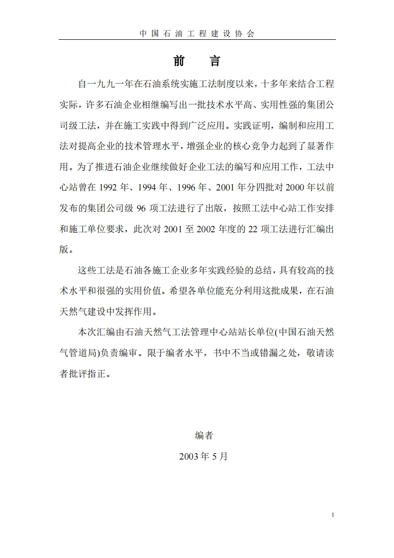 附件3-2001-2002年度石油工程建设工法(省部级)摘要汇编348072@abc33天前发布关注私信0.63MB12页02810附件3-2001-2002年度石油工程建设工法(省部级)摘要汇编此内容为付费资源,请付费后查看¥16¥24黄金会员免费钻石会员免费立即购买您当前未登录!建议登陆后购买,可保存购买订单付费资源 第1页 / 共12页 第2页 / 共12页 试读已结束,还剩10页,您可下载完整版后进行离线阅读 © 版权声明文章版权归作者所有,未经允许请勿转载。THE ENDJAVA开发Matlab仿真单片机设计安卓开发实习实践小程序设计物联网设计理学类网站设计网络规划设计 文本预览 2001—2002年度石油工程建设工法(省、部级)摘要汇编中国石油工程建设协会2012.2 查看更多 收起部分 喜欢就支持一下吧点赞10 分享QQ空间微博QQ好友海报分享复制链接收藏