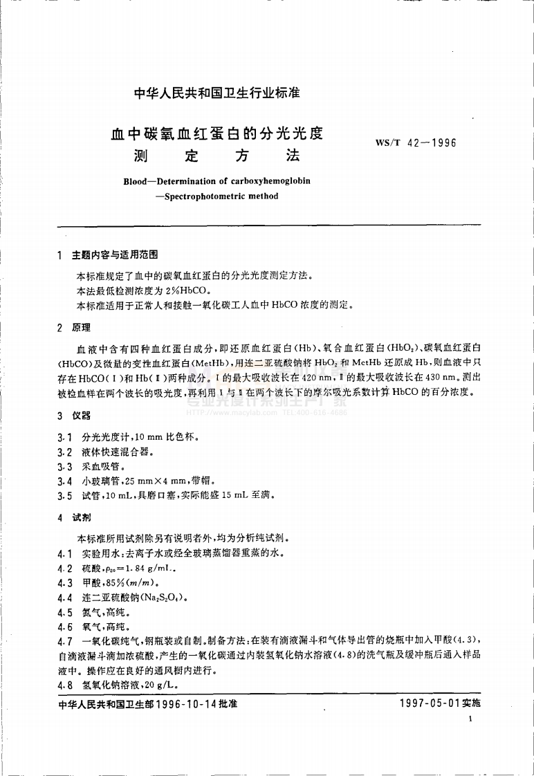 WST-42-1996-血中碳氧血红蛋白的分光光度测定方法348072@abc2个月前发布关注私信0.17MB6页042WST-42-1996-血中碳氧血红蛋白的分光光度测定方法此内容为付费资源,请付费后查看¥17¥23黄金会员免费钻石会员免费立即购买您当前未登录!建议登陆后购买,可保存购买订单付费资源 第1页 / 共6页 第2页 / 共6页 试读已结束,还剩4页,您可下载完整版后进行离线阅读 THE END标准规范 文本预览 W中华人民共和国卫生行业标准WS/T42-1996血中碳氧血红蛋白的分光光度测定方法析仪器Blood-Determination of carboxyhemoglobin-Spectrophotometric method1996-10-14发布1997-05-01实施中华人民共和国卫生部发布 查看更多 收起部分 喜欢就支持一下吧收藏