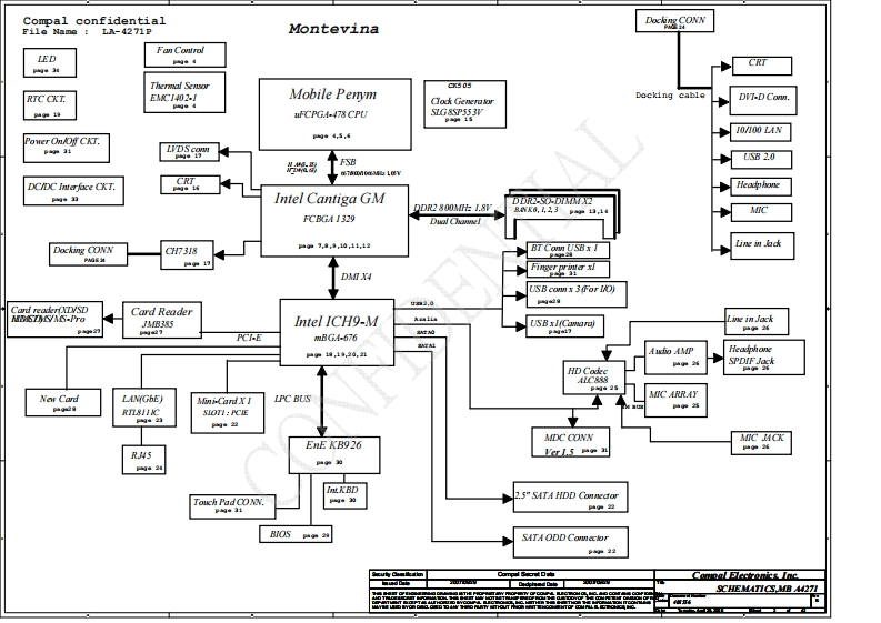 043001000A40000Ag10Compal ConfidentialD4800007D10a品AMiOJAT10 M/B Schematics Document5Intel Penryn Processor with Cantiga DDRII ICH9MDA40000A810Gb440000AC102008-04-07DA40000AD10REV:1.0O■kCanm可tnncSCHEMATICS.MB A27I营年书