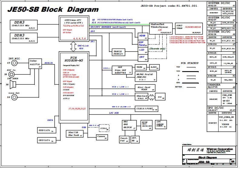 Discrete/UMA /Muxless Schematics DocumentAMD LIANO CPU FSIAMD GPU Manhattan(Park/Madison M2)and Vancouver(Seymour/Whistler M2)緯到貴通Wistron Corporation21F 88.Se1.Hiin Ta WuRd,HachhTpHn.RO.CCover PageJE50 SBSB..20