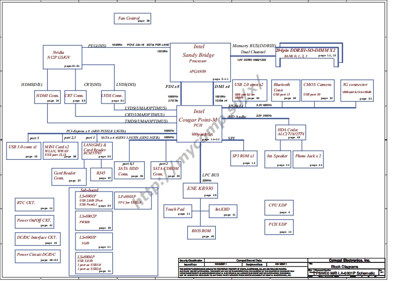 Compal ConfidentialModel Name P5WE0File Name:LA-6901PBOMP/N:43Compal ConfidentialP5WE0 M/B Schematics DocumentIntel Sandy Bridge Processor with DDRIII+Cougar Point PCHNvidia N12P GS/GVmy010-08-11http:REV:0.1Comod ElectonketheCa■Pa9eP3 NEO WB691Psg国