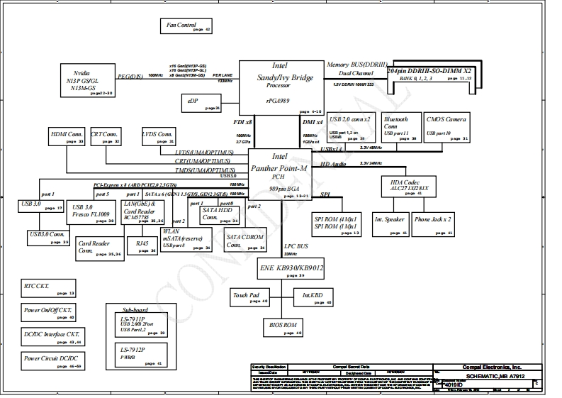 Compal ConfidentialModel Name:Q5WV1/Q5WS1Com pal Project NameFile Name LA-7912PCompal ConfidentialQ5WV1 M/B Schematics DocumentIntel Sandy/Ivy Bridge Processor with DDRIII+Panther Point PCHNvidia N13P GS/GL2012-02-03bREV:0.3Com pal Electronies,Ina.SCHEMATIC MB A79124019D