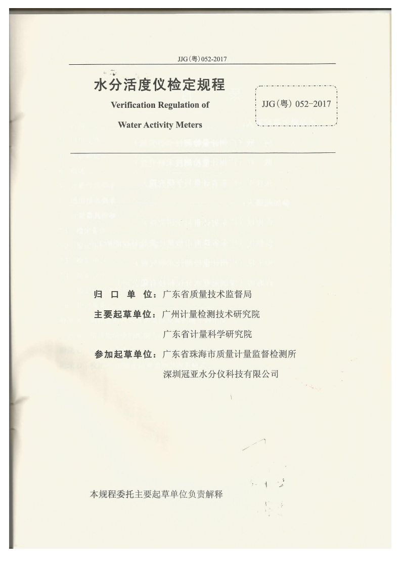 《水分活度仪》[JJG(粤)052-2017]广东省地方计量检定规程11853078348072@abc5个月前发布关注私信4.26MB17页049《水分活度仪》[JJG(粤)052-2017]广东省地方计量检定规程11853078此内容为付费资源,请付费后查看¥17¥22黄金会员免费钻石会员免费立即购买您当前未登录!建议登陆后购买,可保存购买订单付费资源 第1页 / 共17页 第2页 / 共17页 试读已结束,还剩15页,您可下载完整版后进行离线阅读 THE END标准规范 文本预览 J可G广东省地方计量检定规程JJG(粤)052-2017水分活度仪Water Activity Meters2017-12-14发布+2018-02-01实施广东省质量技术监督局发布 查看更多 收起部分 喜欢就支持一下吧收藏