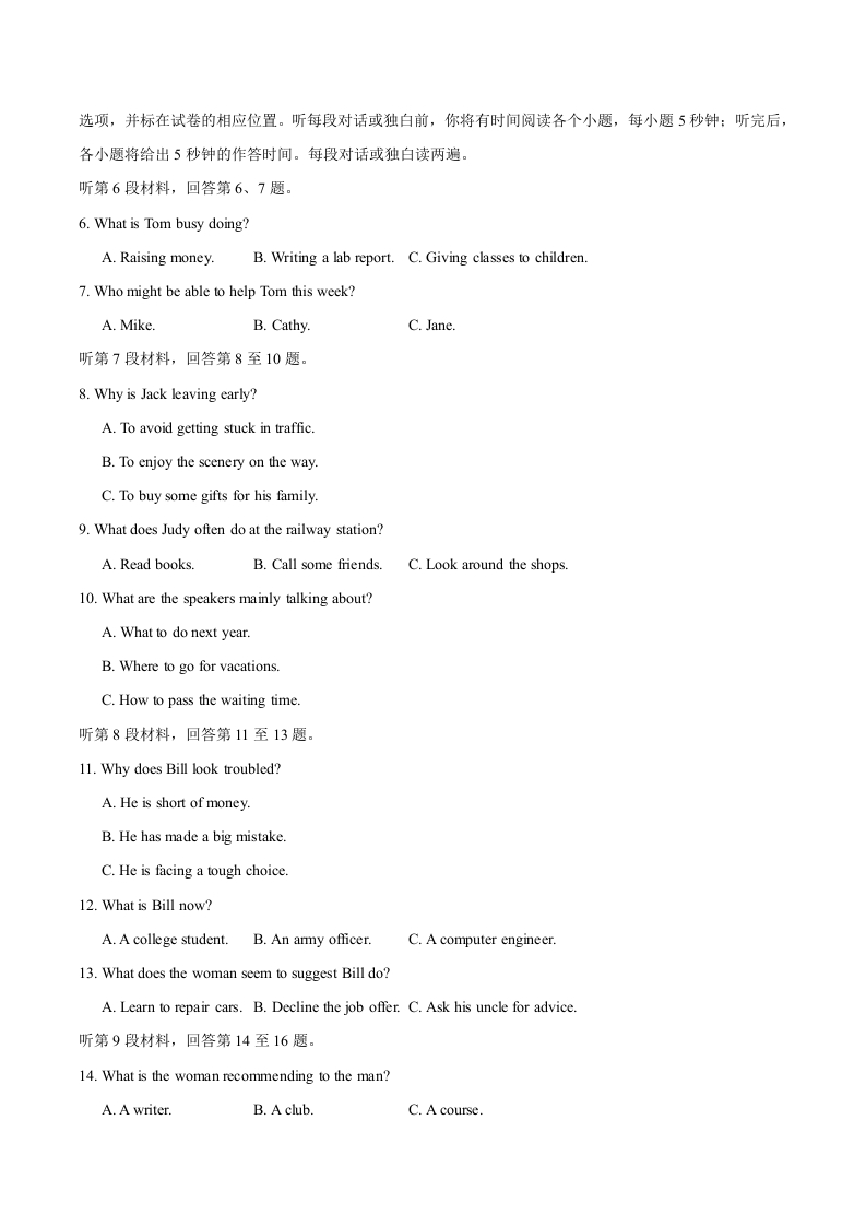 2020年浙江高考英语7月试题348072@abc30天前发布关注私信83.50KB10页049142020年浙江高考英语7月试题此内容为付费资源,请付费后查看¥13¥16黄金会员免费钻石会员免费立即购买您当前未登录!建议登陆后购买,可保存购买订单付费资源 第1页 / 共10页 第2页 / 共10页 试读已结束,还剩8页,您可下载完整版后进行离线阅读 © 版权声明文章版权归作者所有,未经允许请勿转载。THE END初中教育学习资源小学教育满分作文高中教育高考真题 喜欢就支持一下吧点赞14 分享QQ空间微博QQ好友海报分享复制链接收藏