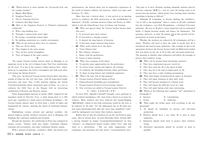 2024-2025(下)全品学练考高中英语必修第三册RJ(测评卷)348072@abc1个月前发布关注私信3.78MB4页0302024-2025(下)全品学练考高中英语必修第三册RJ(测评卷)此内容为付费资源,请付费后查看¥13¥16黄金会员免费钻石会员免费立即购买您当前未登录!建议登陆后购买,可保存购买订单付费资源 第1页 / 共4页 第2页 / 共4页 试读已结束,还剩2页,您可下载完整版后进行离线阅读 THE END初中教育小学教育满分作文高中教育高考真题 喜欢就支持一下吧收藏