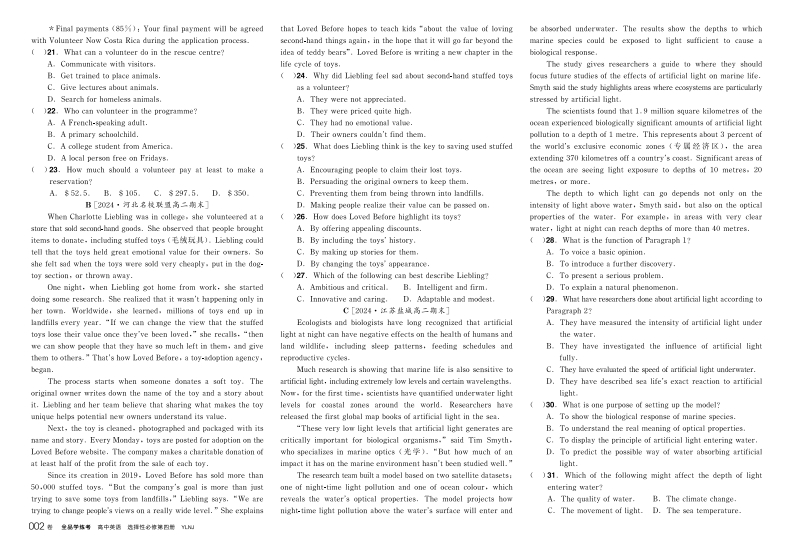 2024-2025(下)全品学练考高中英语选择性必修第四册YLNJ(测评卷)348072@abc2个月前发布关注私信4.10MB4页0442024-2025(下)全品学练考高中英语选择性必修第四册YLNJ(测评卷)此内容为付费资源,请付费后查看¥13¥16黄金会员免费钻石会员免费立即购买您当前未登录!建议登陆后购买,可保存购买订单付费资源 第1页 / 共4页 第2页 / 共4页 试读已结束,还剩2页,您可下载完整版后进行离线阅读 THE END初中教育小学教育满分作文高中教育高考真题 喜欢就支持一下吧收藏