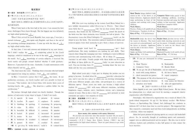 2025-2026(上)全品学练考高中英语必修第一册BS北京专版(测评卷)348072@abc4个月前发布关注私信4.80MB4页0312025-2026(上)全品学练考高中英语必修第一册BS北京专版(测评卷)此内容为付费资源,请付费后查看¥13¥16黄金会员免费钻石会员免费立即购买您当前未登录!建议登陆后购买,可保存购买订单付费资源 第1页 / 共4页 第2页 / 共4页 试读已结束,还剩2页,您可下载完整版后进行离线阅读 THE END初中教育小学教育满分作文高中教育高考真题 喜欢就支持一下吧收藏